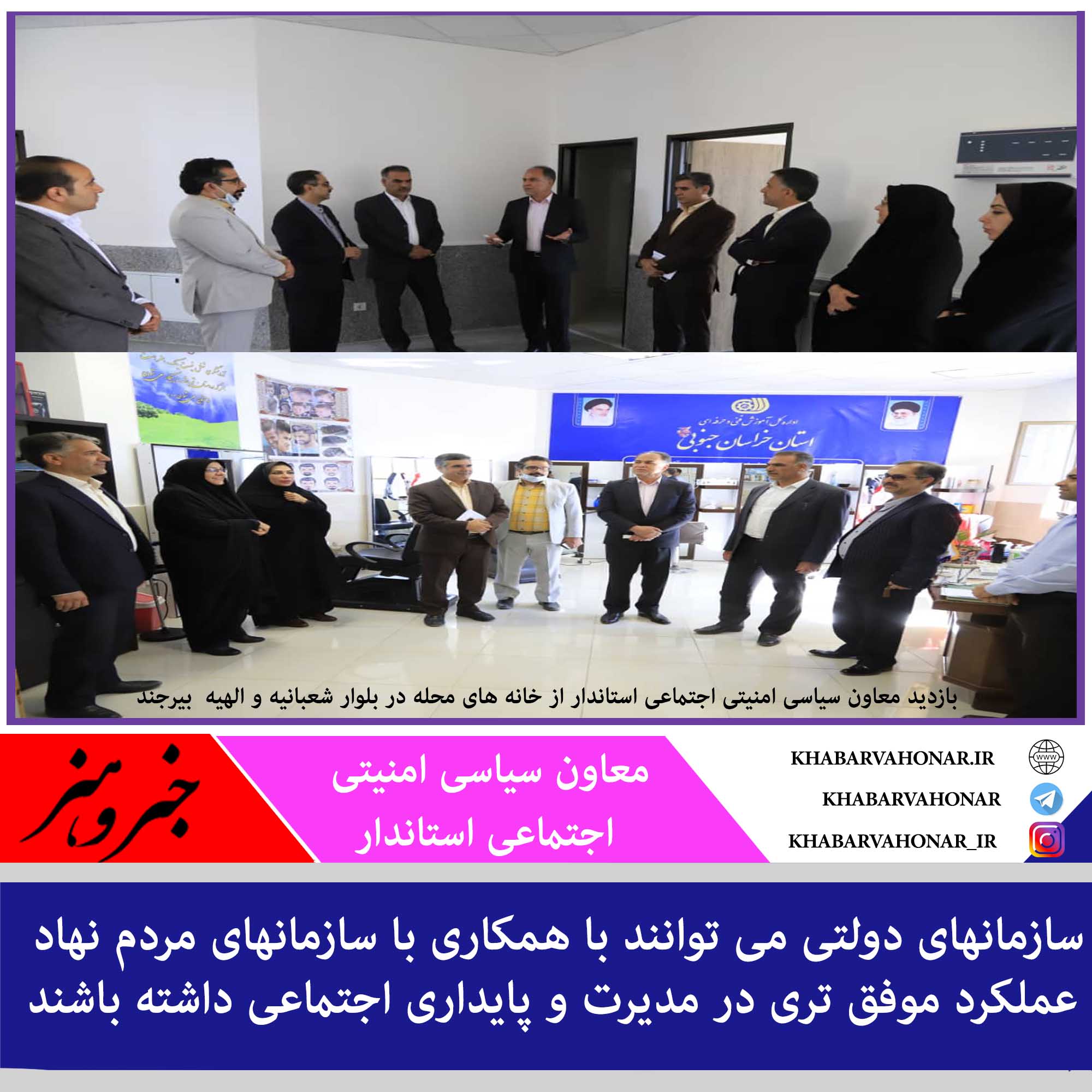 در این بازدید که مدیر کل دفتر امور اجتماعی و شهردار بیرجند حضور داشتند ، دکتر خوش خبر باهدف ایجاد تعامل سازمانهای مردم نهاد با شهرداری از خانه های محله در بلوار شعبانیه و الهیه بازدید نمودند.