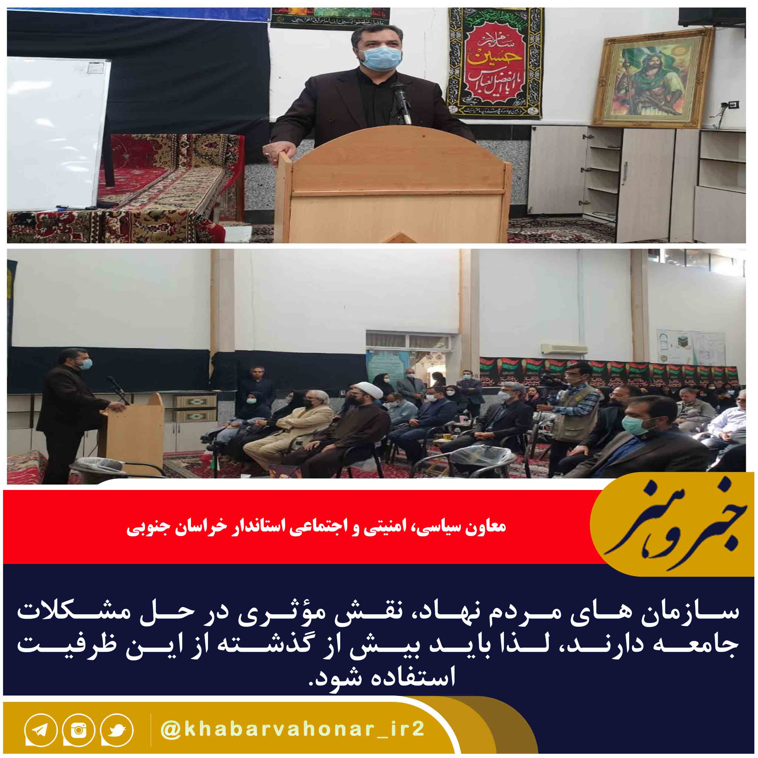 ?معاون سیاسی، امنیتی و اجتماعی استاندار خراسان جنوبی گفت: سازمان های مردم نهاد، نقش مؤثری در حل مشکلات جامعه دارند، لذا باید بیش از گذشته از این ظرفیت استفاده شود.