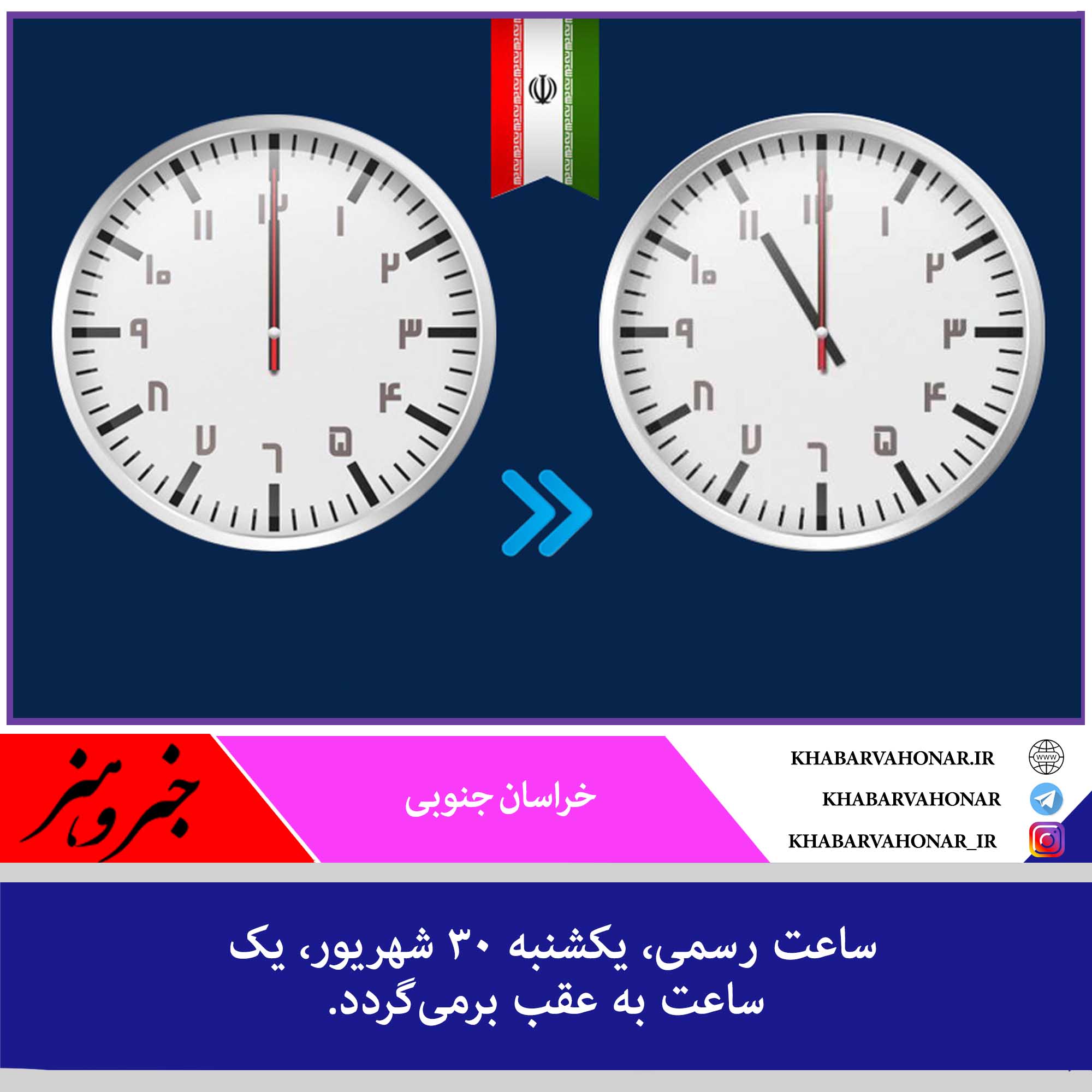 ساعت رسمی، یکشنبه ۳۰ شهریور، یک ساعت به عقب برمیگردد.