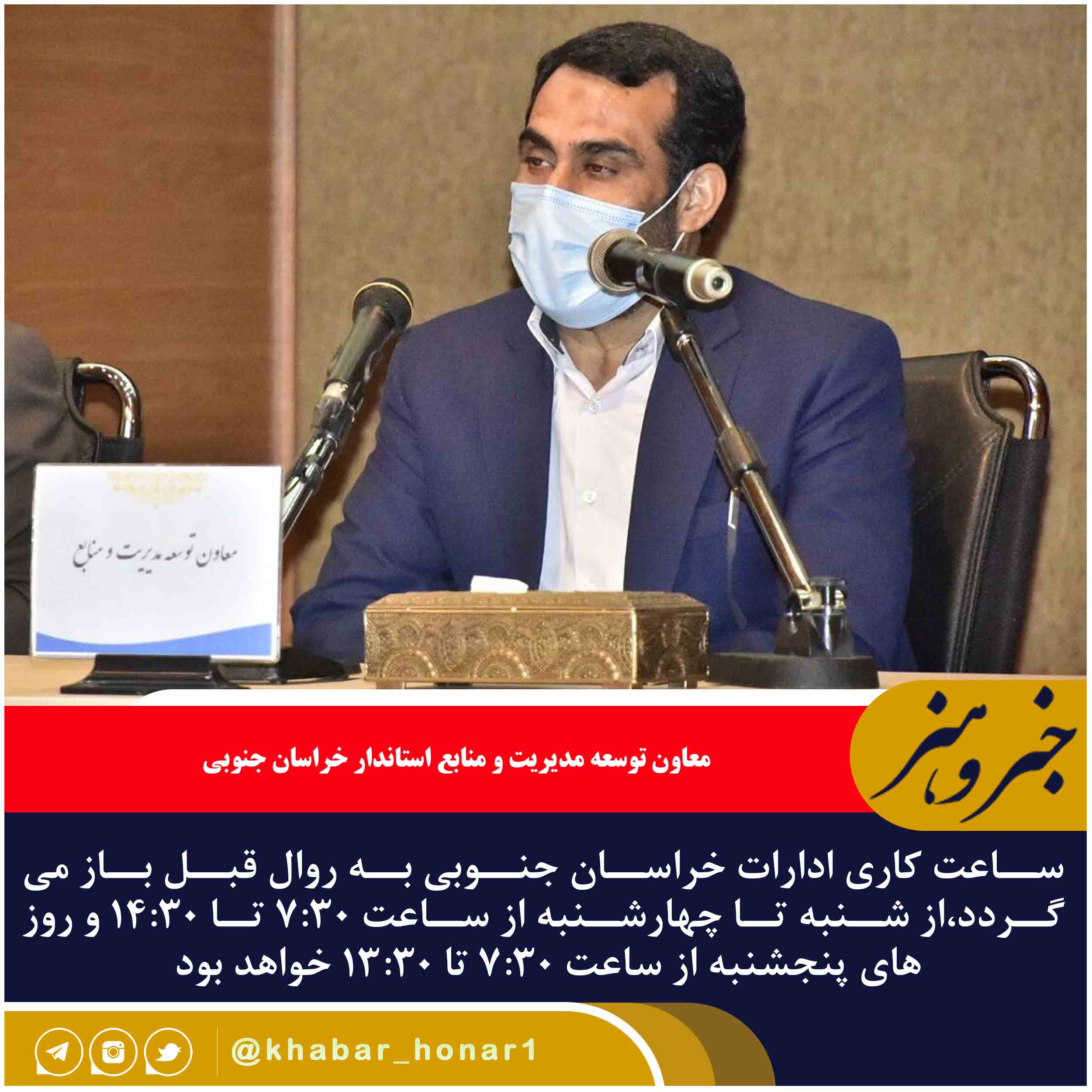 معاون توسعه مدیریت و منابع استاندار خراسان جنوبی گفت: براساس مصوبه هیات وزیران از پنجم شهریور ماه جاری ساعت کاری ادارات استان به روال قبل باز میگردد.