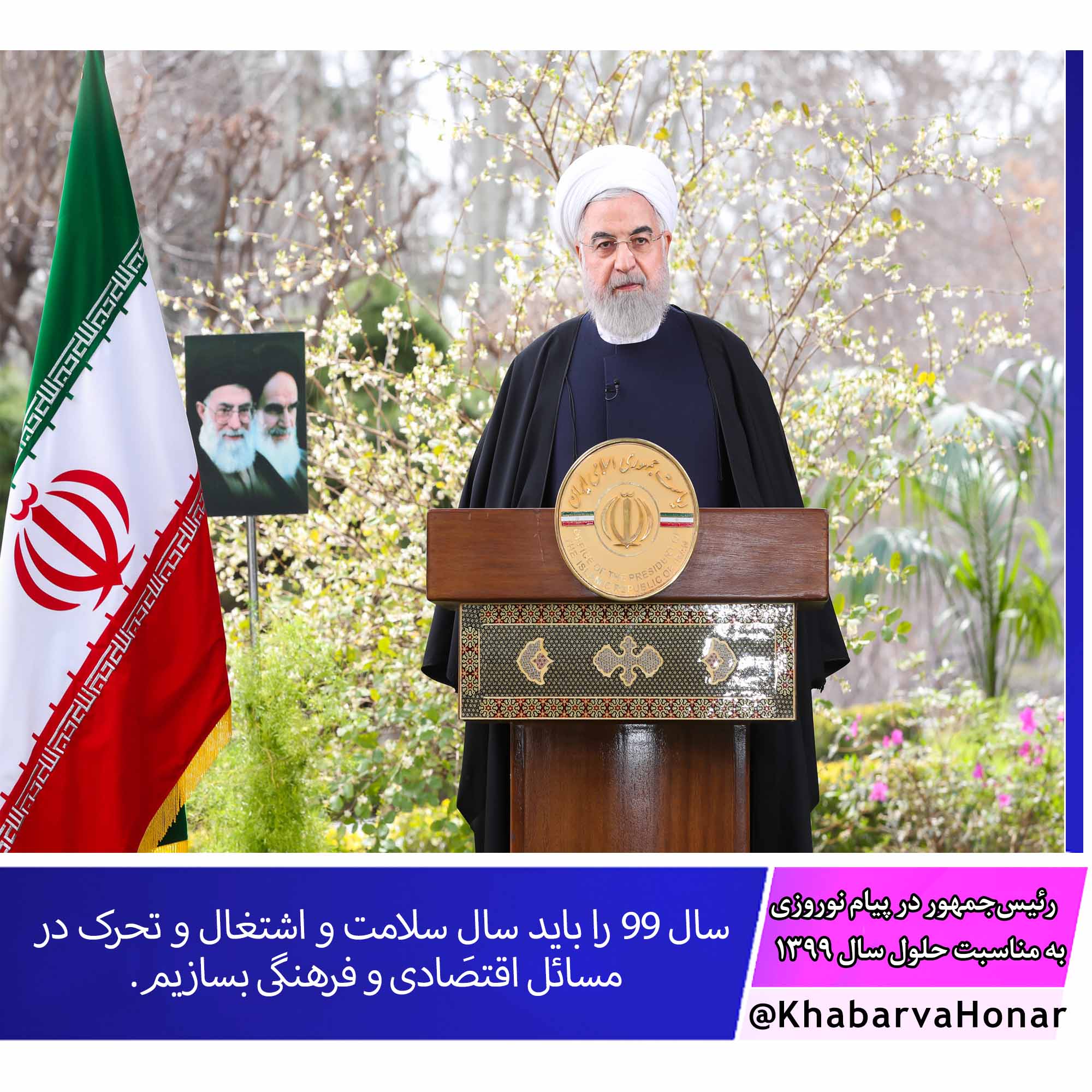 رئیس‌جمهور در پیام نوروزی به مناسبت حلول سال ۱۳۹۹ هجری شمسی، با بیان اینکه “وحدت، اتحاد و اخلاق است که می‌تواند آینده خوبی را برای ما بسازد”، تاکید کرد: سال ۹۹ سالِ افتتاح طرح‌های بزرگ، سال رونق با کمک همه مردم در بخش اقتصاد و سال تحول در زندگی مردم و روابط اقتصادی ما با جهان و تعاملات ما با همسایگان ما خواهد بود.