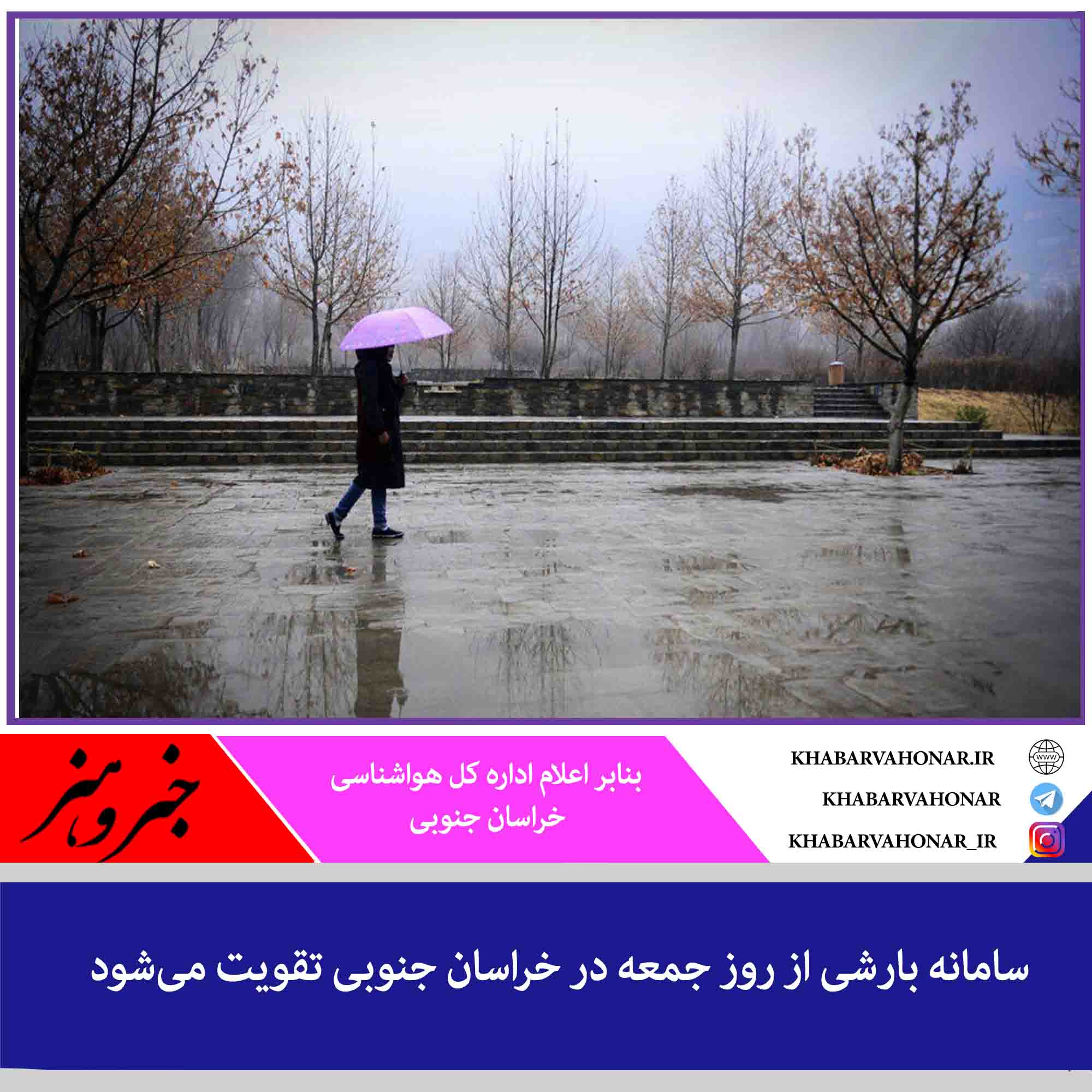 بنابر اعلام اداره کل هواشناسی خراسان جنوبی فعالیت سامانه بارشی به ویژه در نیمه شمالی استان و مرکز همراه با نفوذ توده هوای سرد از روز جمعه پنجم دی تقویت میشود.