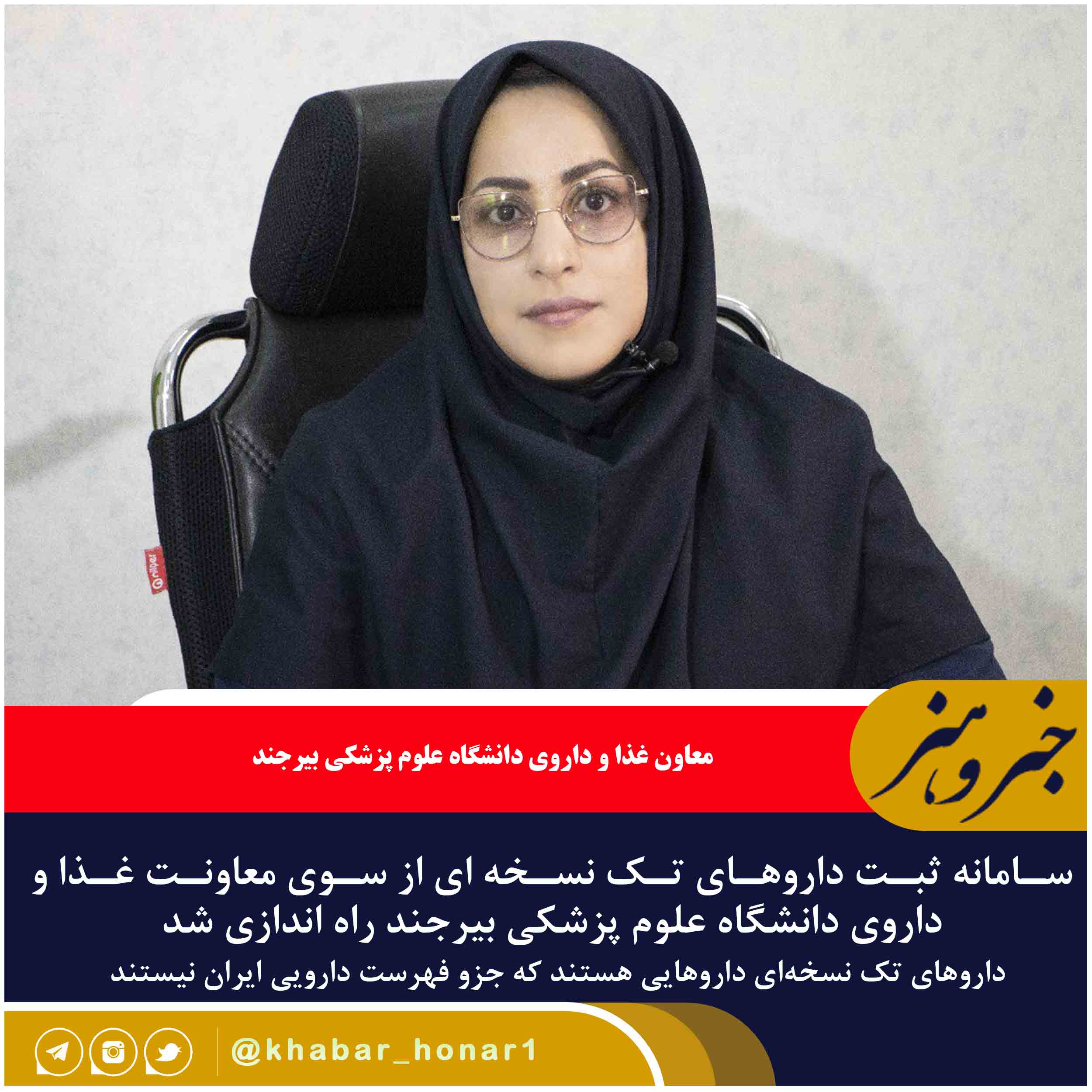 سامانه ثبت داروهای تک نسخه ای از سوی معاونت غذا و داروی دانشگاه علوم پزشکی بیرجند راه اندازی شد.