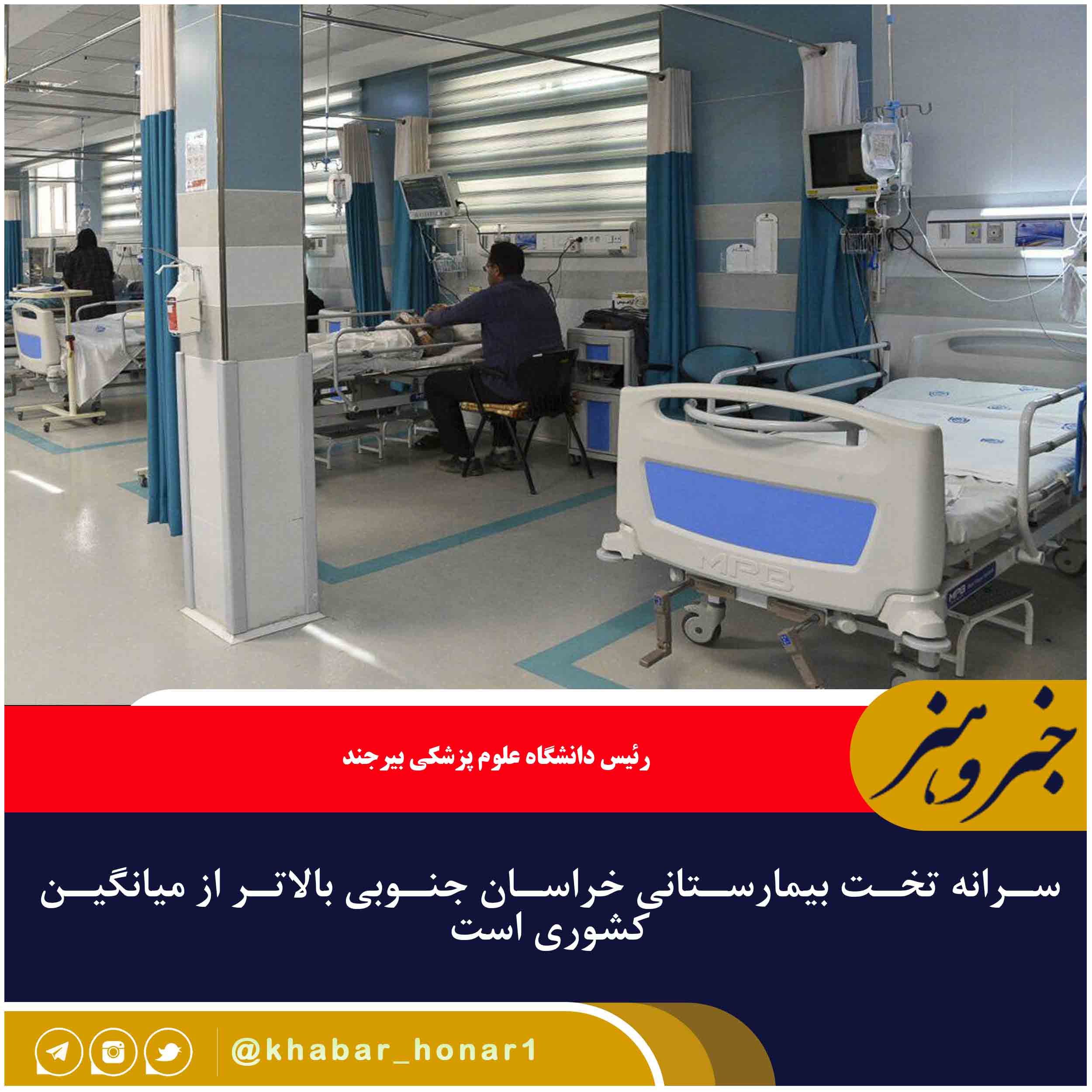 رئیس دانشگاه علوم پزشکی بیرجند گفت: سرانه تخت فعال در بیمارستانهای استان نسبت به جمعیت تحت پوشش دانشگاه ۱.۹ تخت بیمارستانی به ازای هر هزار نفر بوده در حالی که این شاخص در کل کشور ۱.۷۹ است.