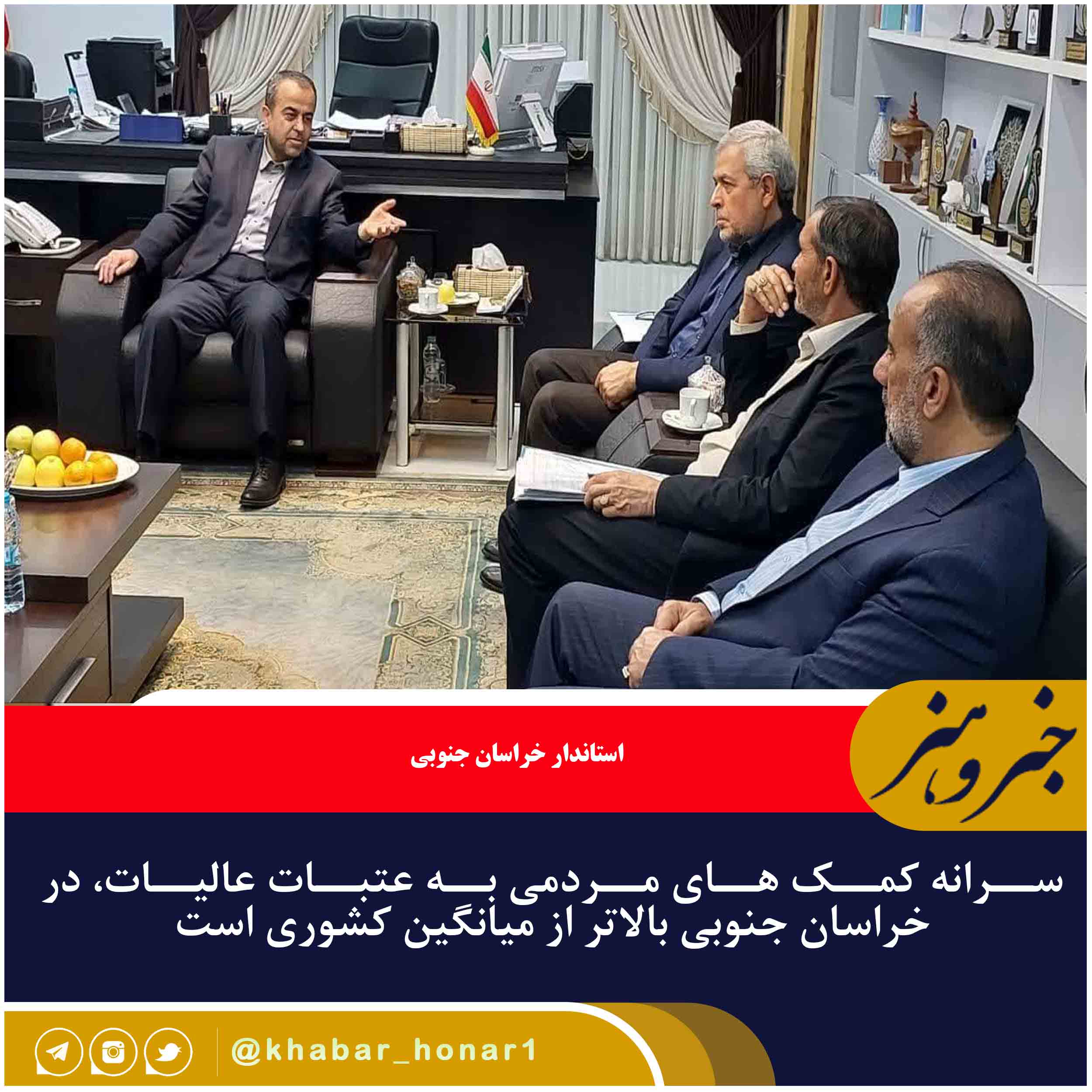 ?استاندار اظهار داشت: اگرچه خراسان جنوبی از لحاظ شاخص جمعیت یا مسائل معیشتی و اقتصادی نسبت به سایر استان ها رتبههای پایینتری دارد اما به واسطه تدین مردم در کمک به اعتاب مقدسه جزو استانهای برتر است.