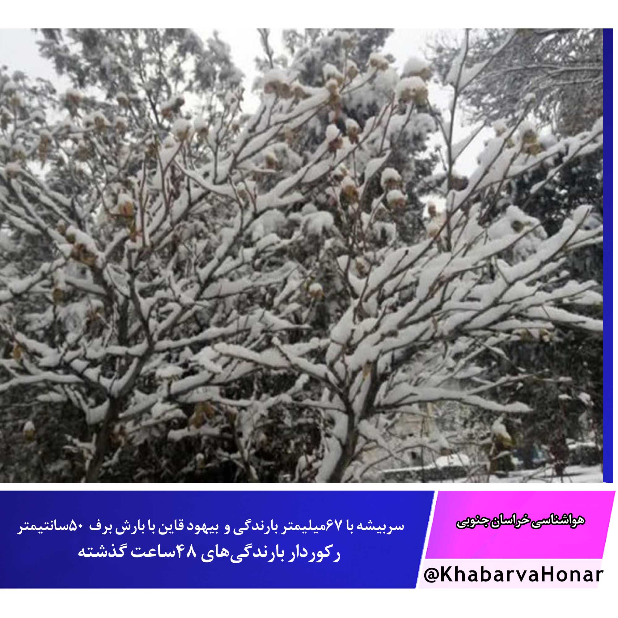 ماهیرود شهرستان سربیشه با ۶۷میلیمتر بارندگی و بارش برف با ۵۰سانتیمتر به بیهود قاین اختصاص دارد.