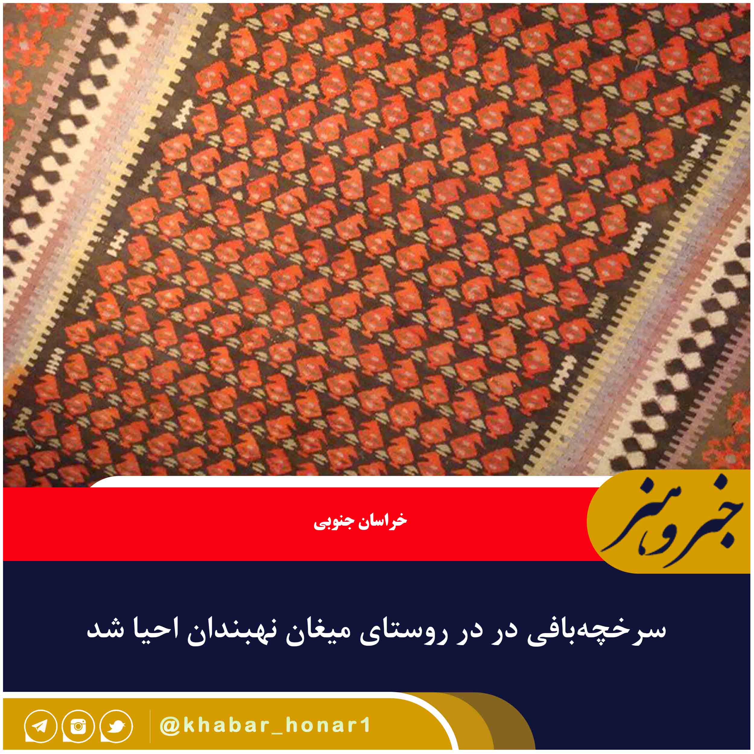 مسئول میراث فرهنگی، گردشگری و صنایع دستی نهبندان اظهار کرد: رشته سرخچهبافی در روستای میغان این شهرستان احیا شد و جان دوباره گرفت.