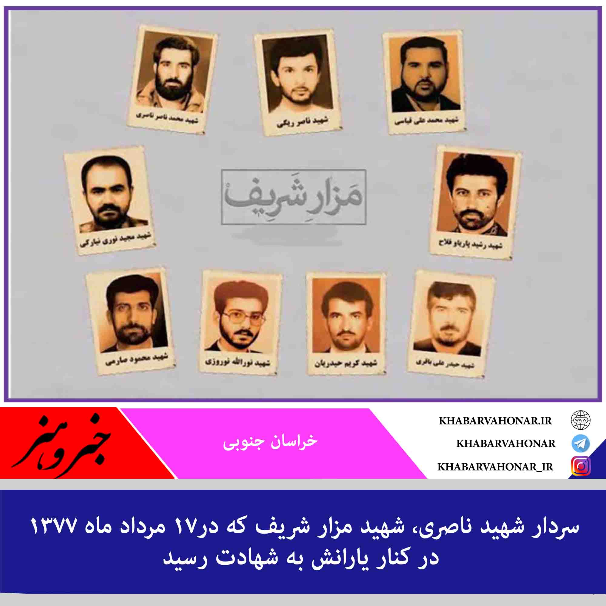 ?۱۷ مرداد ماه ۱۳۷۷ سردار شهید محمد ناصر ناصری یکی از مسئولان کنسولگری ایران در مزارشریف افغانستان به شهادت رسید.
