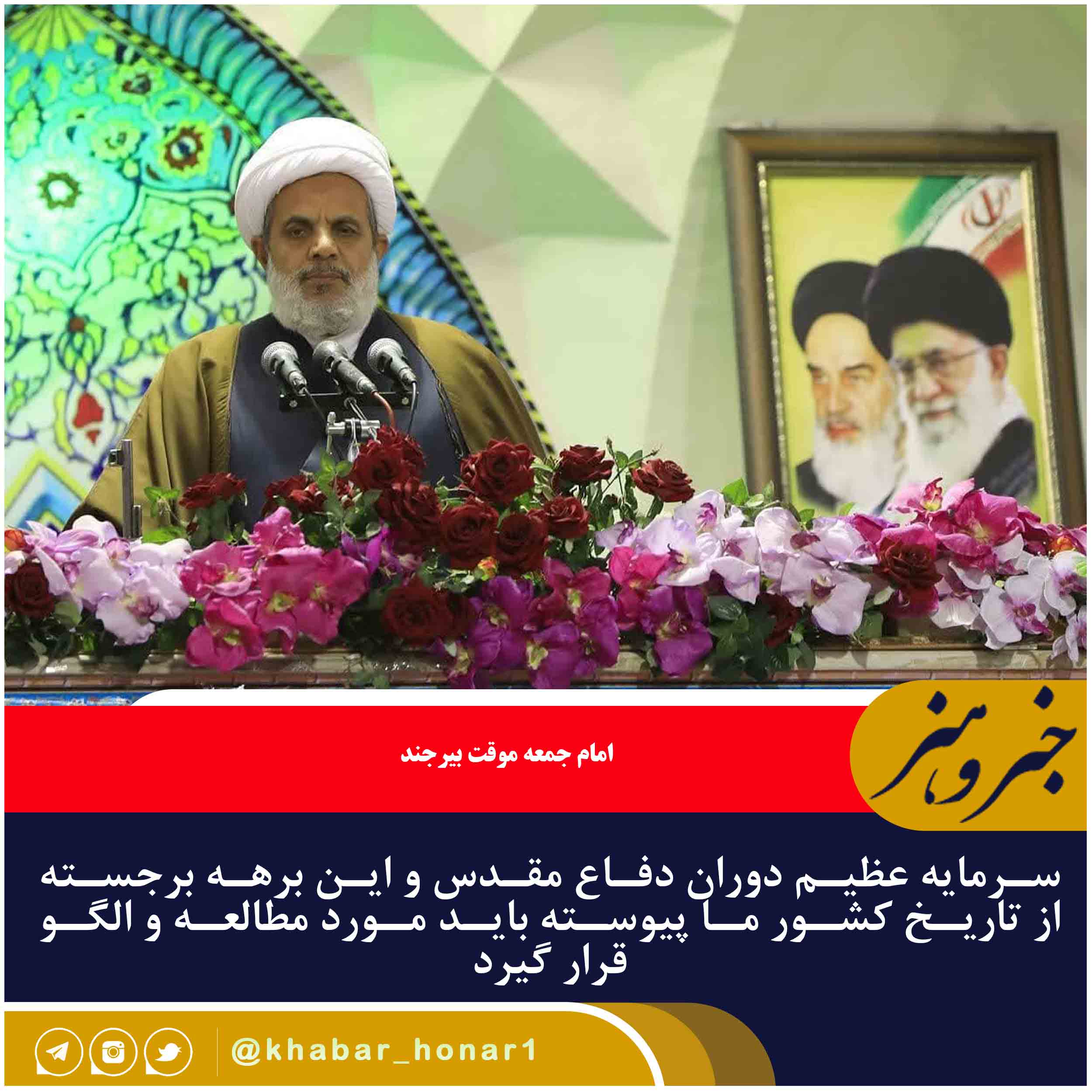 امام جمعه موقت بیرجند با اشاره به الگو بودن شخصیت پیامبر اسلام و حضرت ابراهیم در قرآن، تصریح کرد: در آیه ۲۱ سوره احزاب آمده است: «لَّقَدْ کَانَ لَکُمْ فِی رَسُولِ اللَّهِ أُسْوَهٌ حَسَنَهٌ لِّمَن کَانَ یَرْجُو اللَّهَ وَالْیَوْمَ الْآخِرَ وَذَکَرَ اللَّهَ کَثِیرًا؛ مسلّماً برای شما در زندگی رسول خدا سرمشق نیکویی است، برای آنها که امید به رحمت خدا و روز رستاخیز دارند و خدا را بسیار یاد میکنند»؛ این آیه پیرامون معرفی پیامبر اکرم به عنوان اسوه و الگو است.