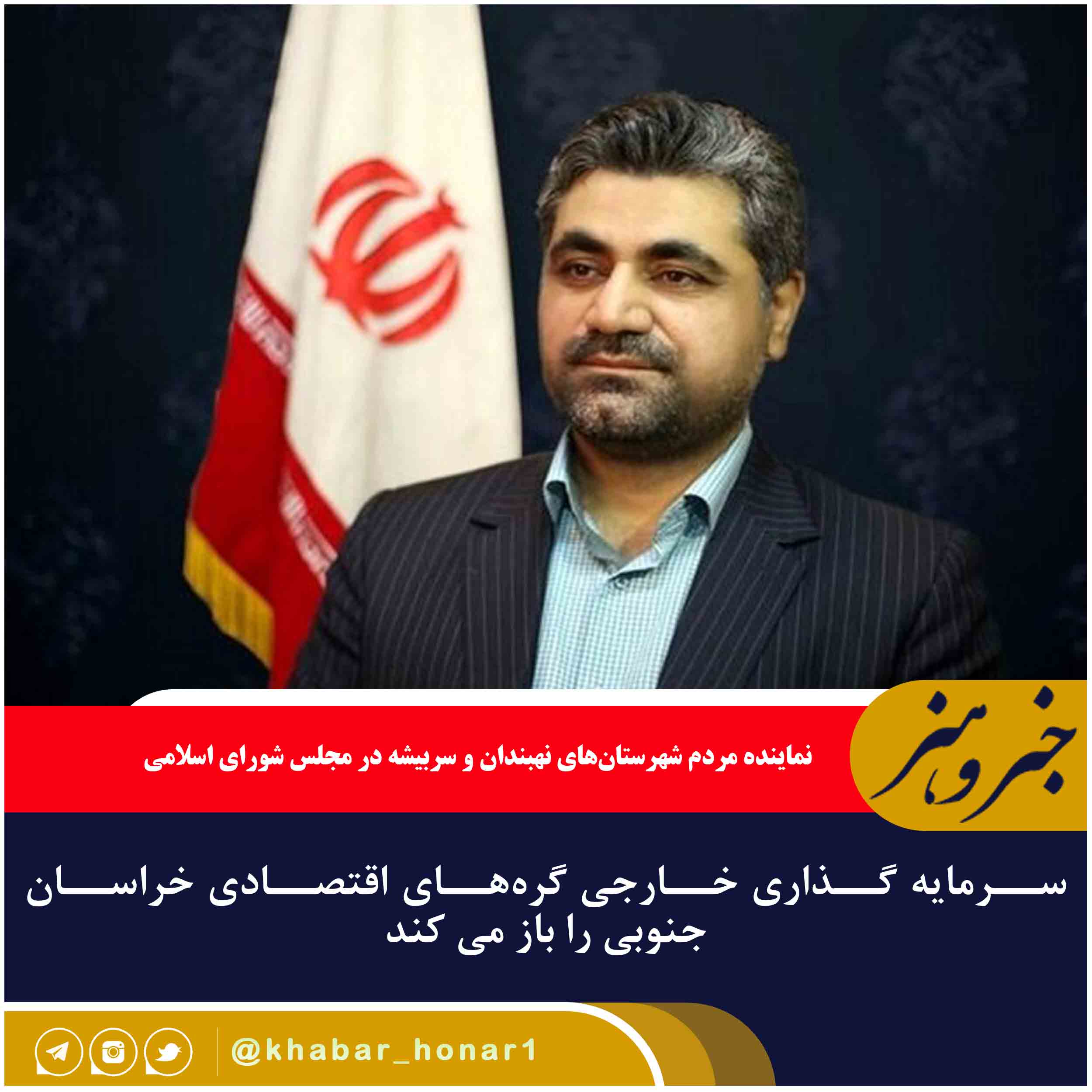 نماینده مردم شهرستانهای نهبندان و سربیشه در مجلس شورای اسلامی گفت: سرمایه گذاری خارجی میتواند بسیاری از گرههای اقتصادی ما را در بخشهایی چون اشتغال باز کند.