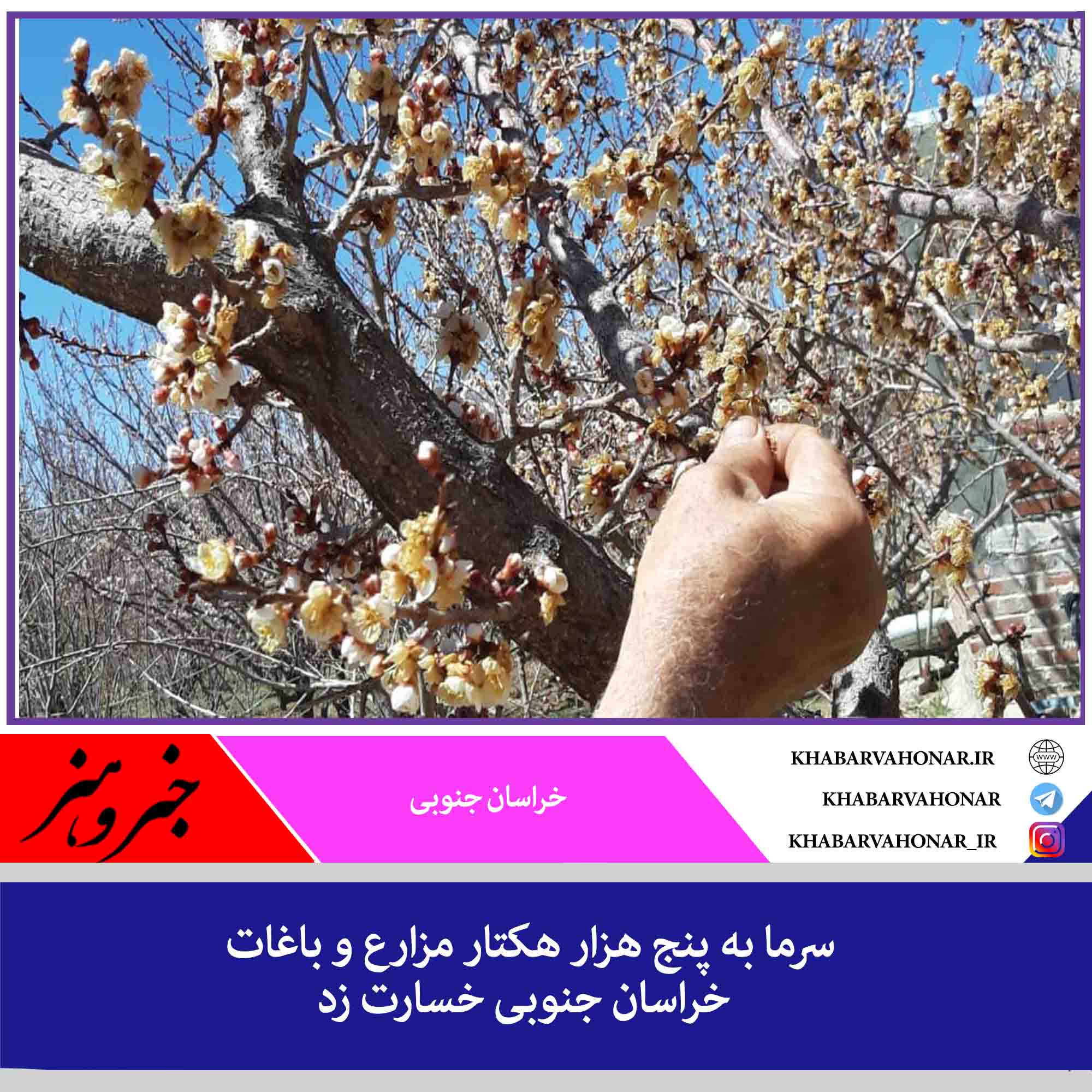 رییس اداره مدیریت بحران و کاهش مخاطرات بخش کشاورزی سازمان جهاد کشاورزی خراسان جنوبی گفت: از ابتدای سال زراعی جاری سرما به پنج هزار هکتار از مزارع و باغات این استان خسارت زده است.