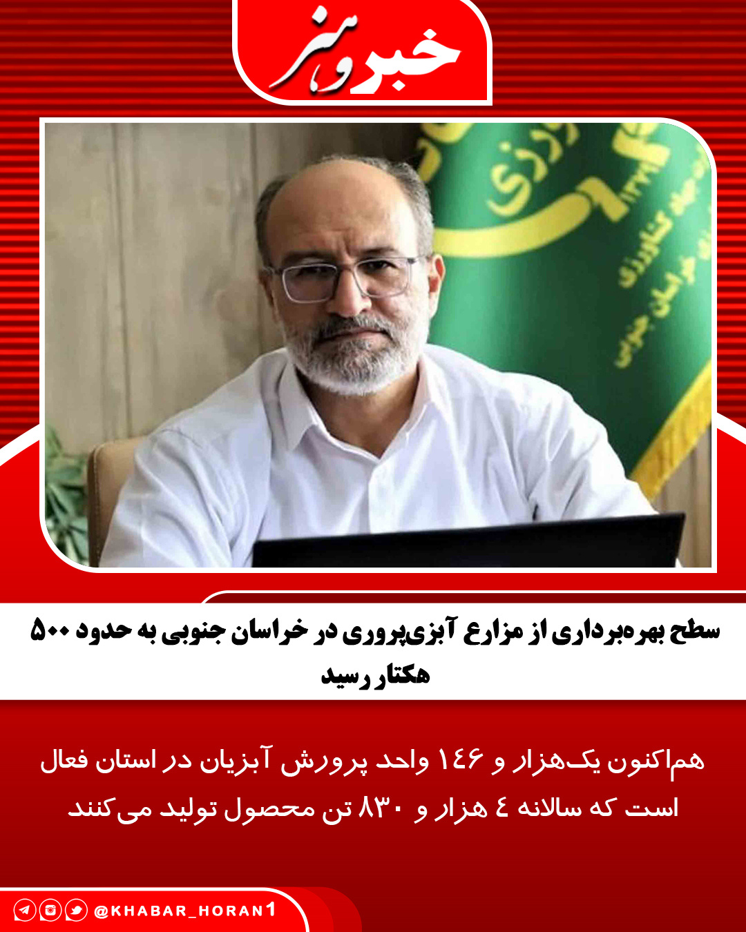 اسفندیاری از شناسایی ۱۲۶ منبع آبی غیرمتعارف با مجموع دبی ۲ هزار و ۳۹۷۷ لیتر در ثانیه خبر داد و گفت: این منابع قابلیت پرورش گونههای مختلف ماهیان را دارند و در صورت اجرای طرحهای زیرساختی و حمایت از سرمایهگذاران میتوانند سالانه تا ۲ هزار و ۴۰۰ میلیارد تومان ارزش افزوده ایجاد کنند.