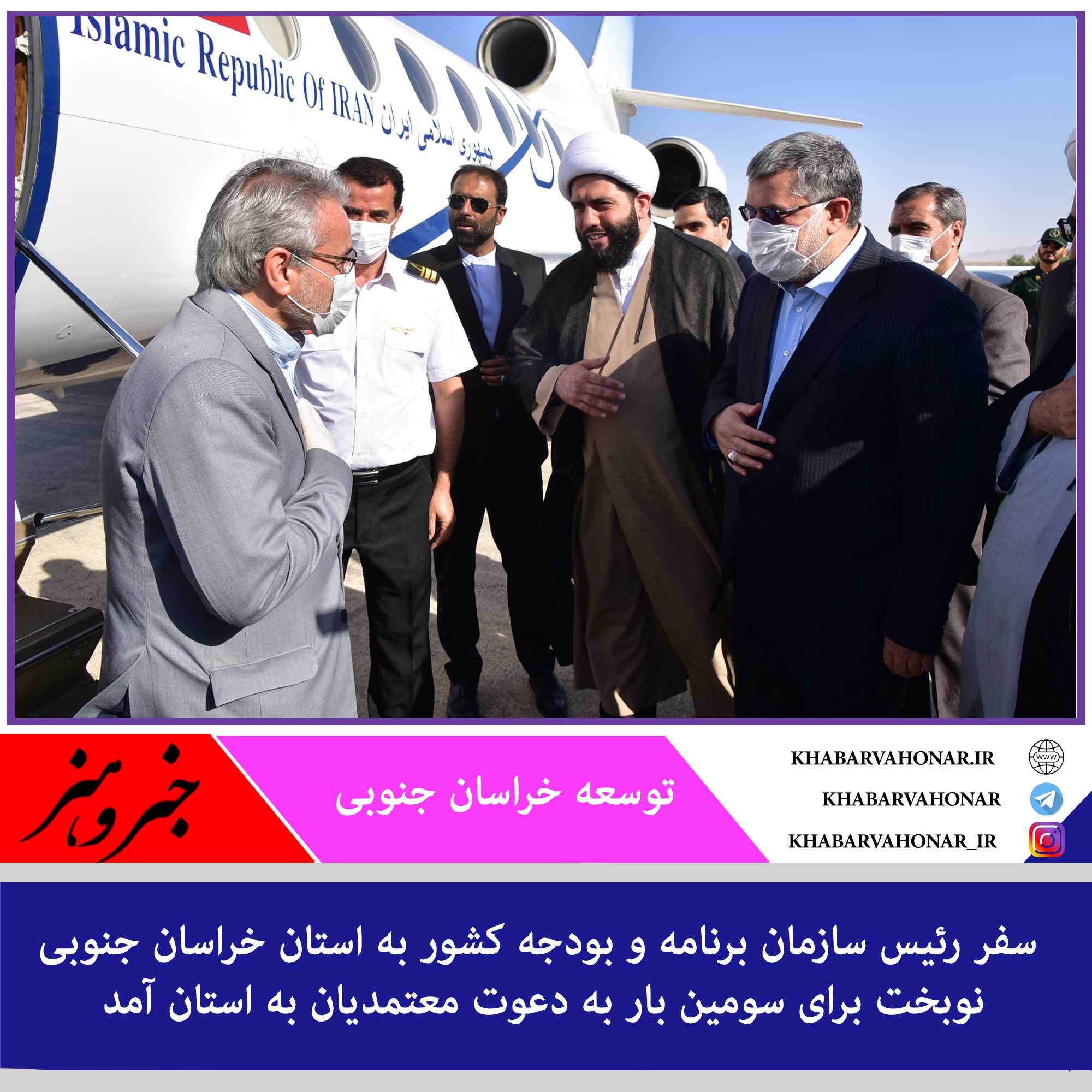 معاون رییس جمهور و رییس سازمان برنامه و بودجه کشور برای حضور در مراسم افتتاح و کلنگ زنی چندین پروژه به خراسان جنوبی سفر کرده است.