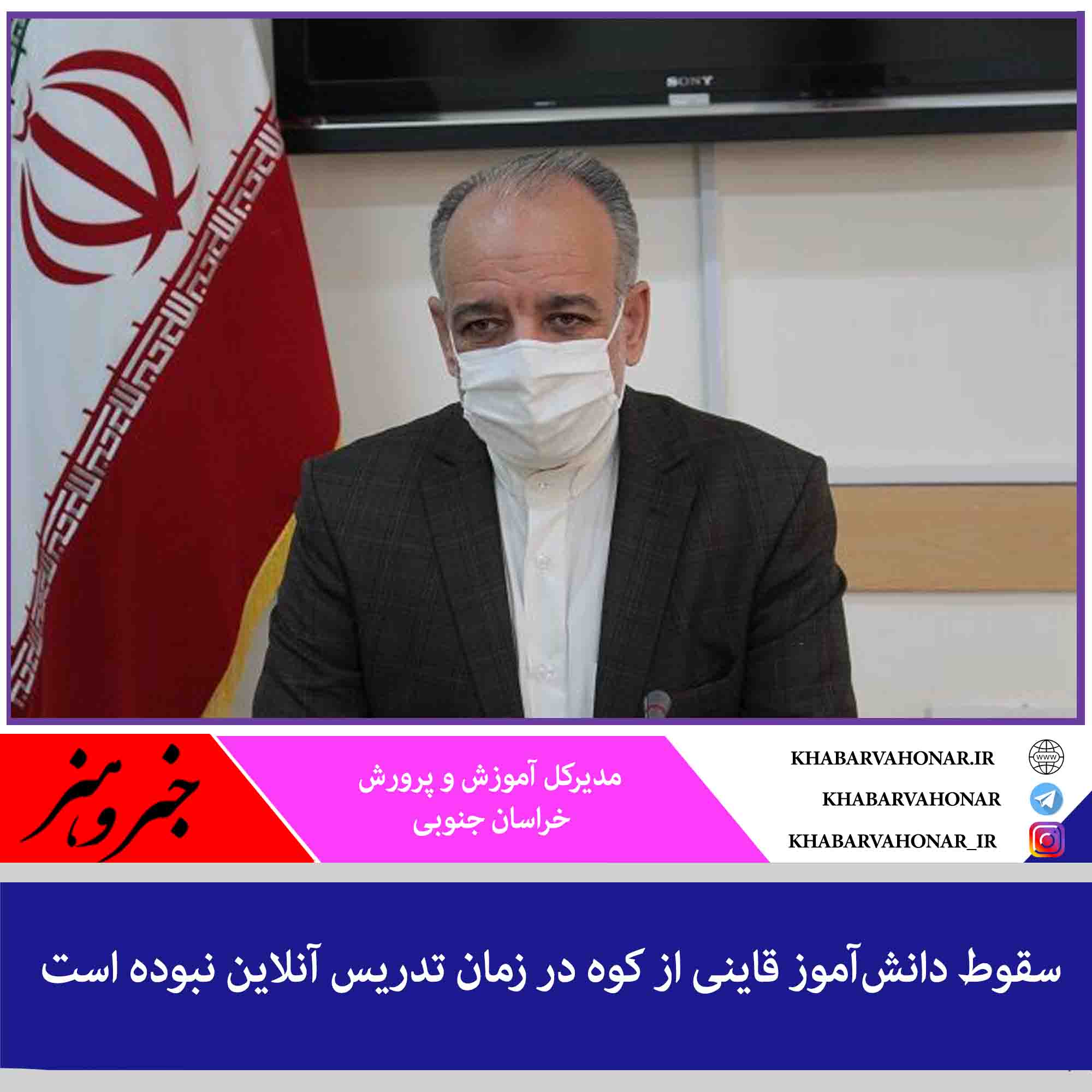 مدیرکل آموزش و پرورش خراسان جنوبی گفت: طبق اطلاعات واصله حادثه سقوط از کوه برای دانشآموز شهرستان قاینات بین ساعت ۱۴ تا ۱۵ روز شنبه (۱۷ آبان) رخ داده در حالی که کلاسی از طرف معلم دانشآموز در این ساعت برگزار نشده است.