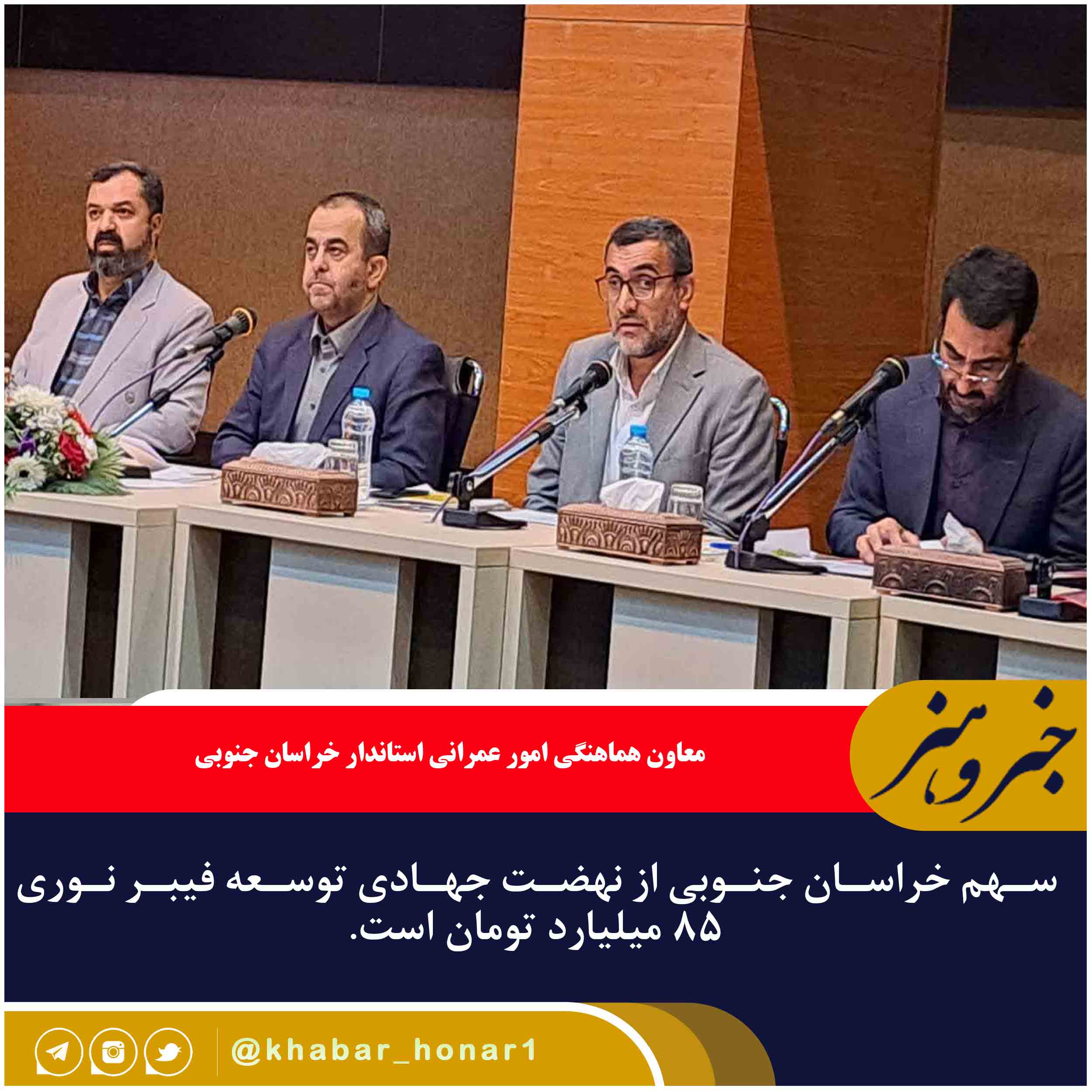 معاون هماهنگی امور عمرانی استاندار خراسان جنوبی گفت: نهضت جهادی توسعه فیبر نوری در سطح کشور اجرا میشود که سهم خراسان جنوبی از این طرح ۸۵ میلیارد تومان است.