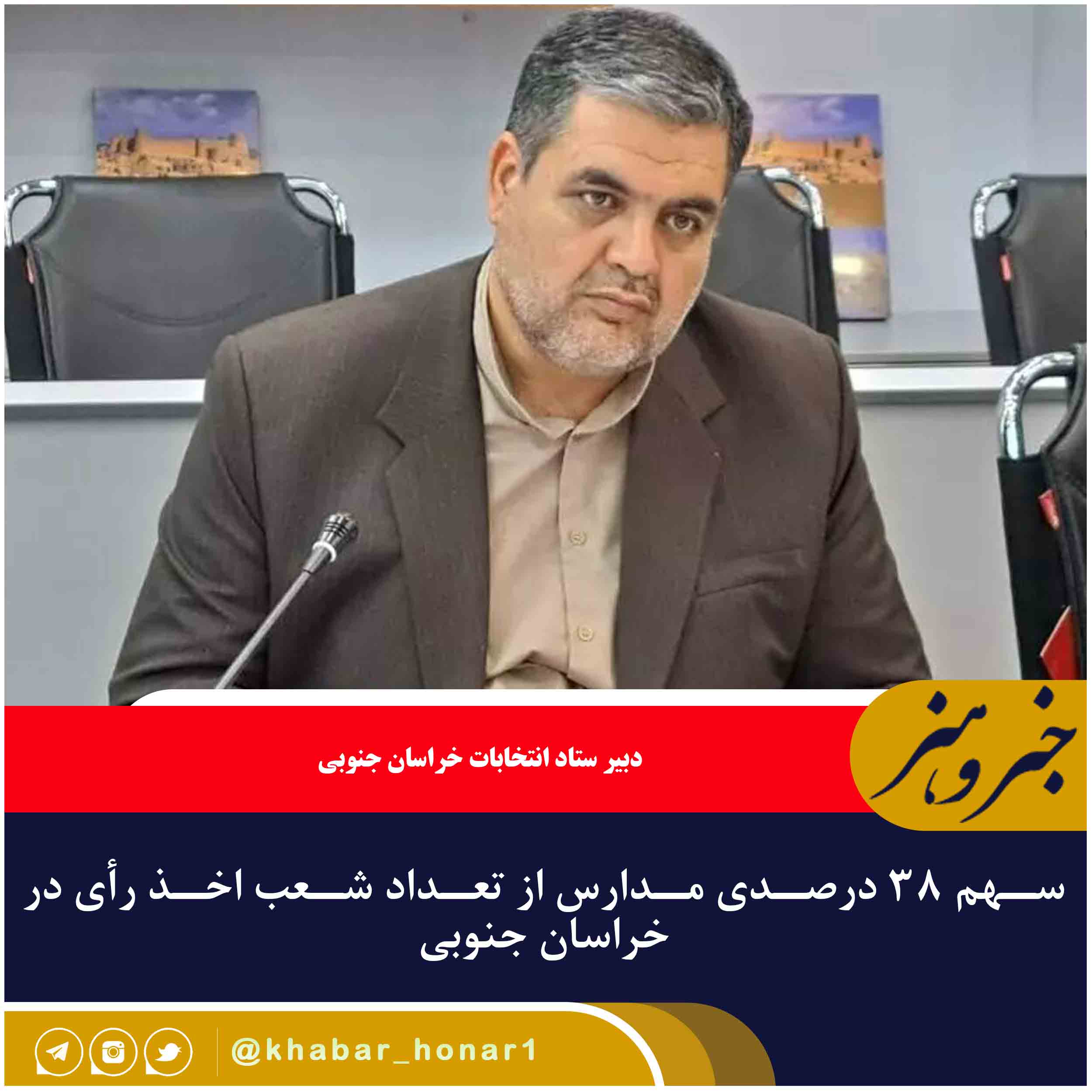 دبیر ستاد انتخابات خراسان جنوبی از سهم ۳۸ درصدی مدارس از تعداد شعب اخذ رأی این استان خبر داد.