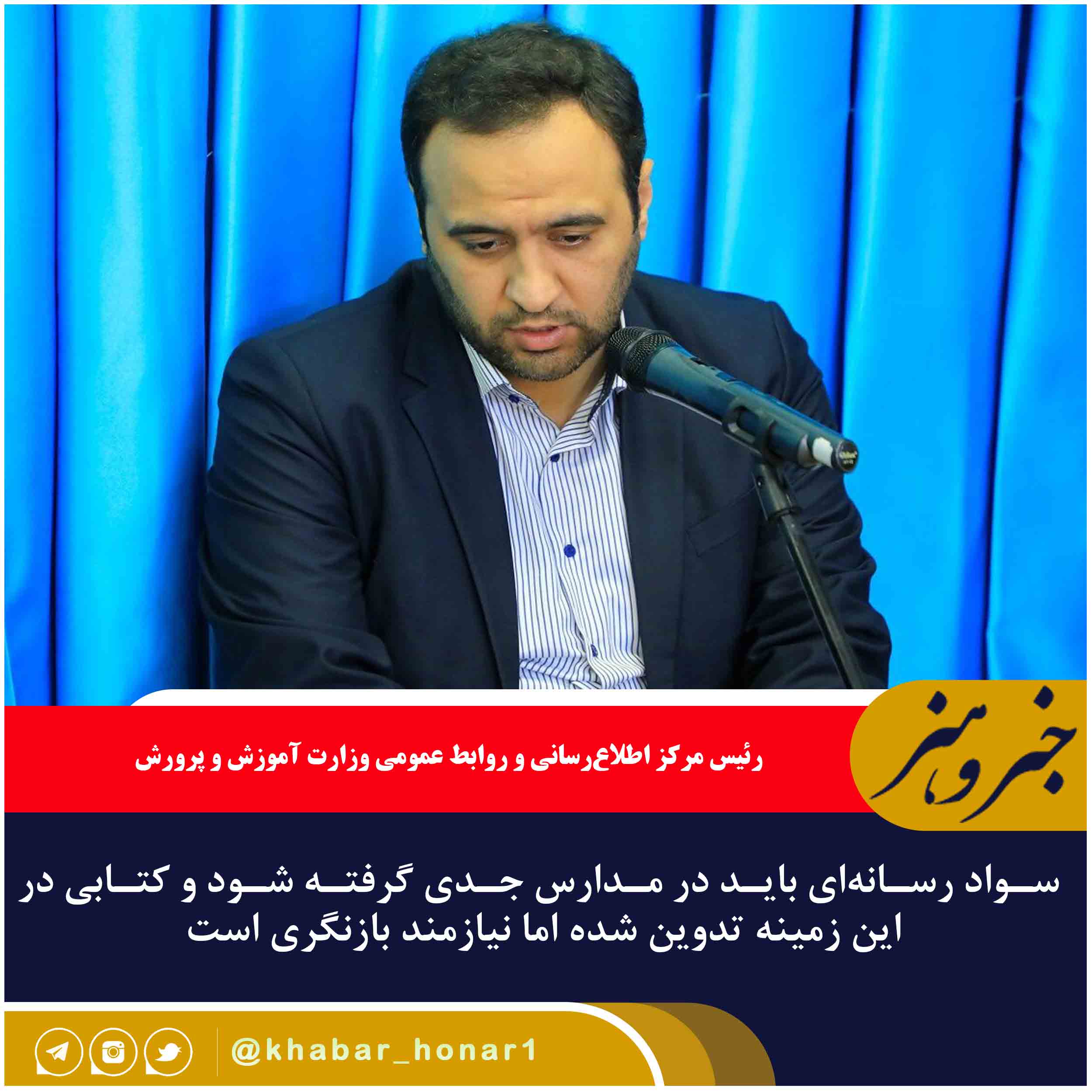 رئیس مرکز اطلاعرسانی و روابط عمومی وزارت آموزش و پرورش گفت: سواد رسانهای باید در مدارس جدی گرفته شود و کتابی در این زمینه تدوین شده اما نیازمند بازنگری است.