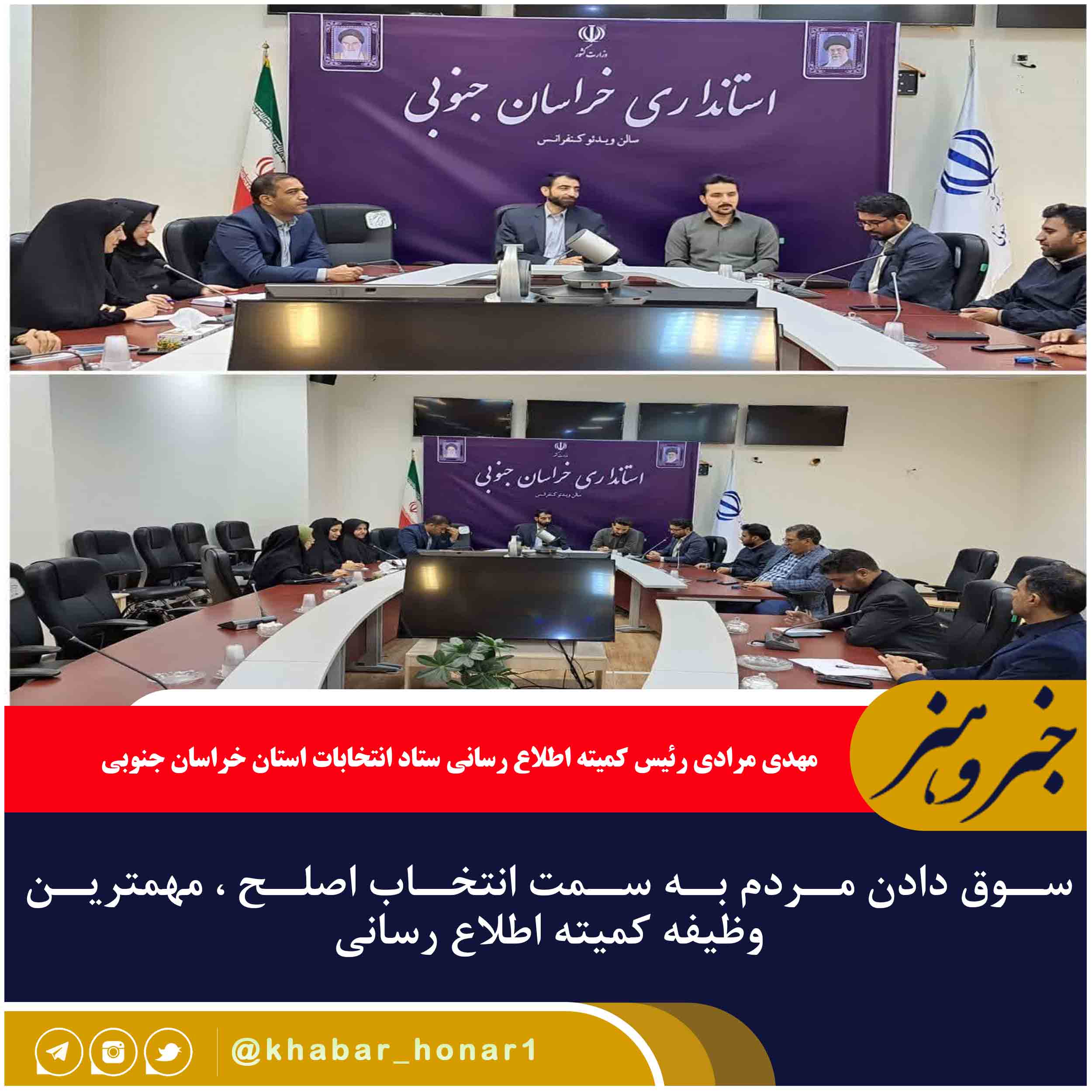 ?رئیس کمیته اطلاع رسانی ستاد انتخابات استان خراسان جنوبی تأکید کرد: سوق دادن مردم به سمت انتخاب اصلح ، مهمترین وظیفه کمیته اطلاع رسانی است.