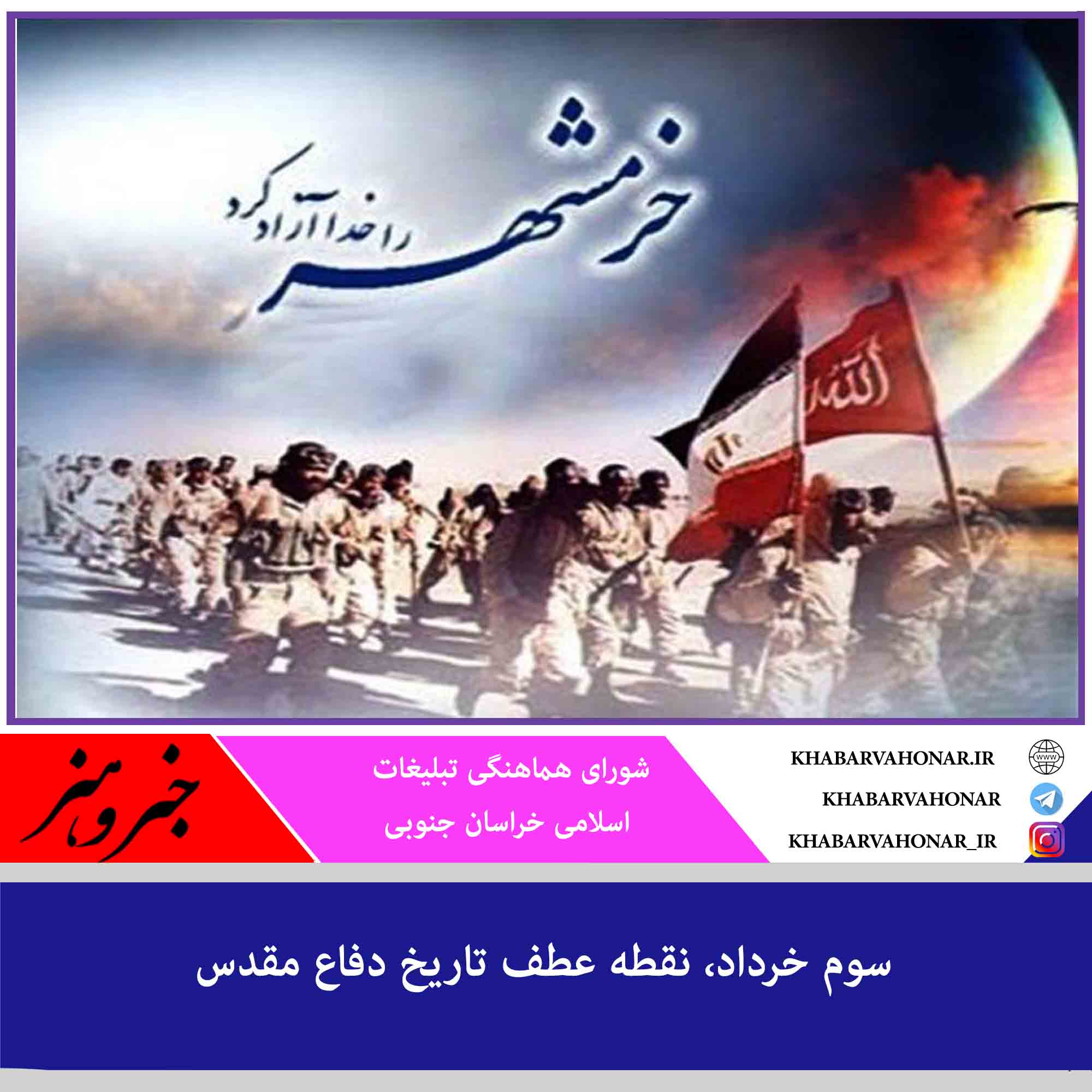 سوم خرداد ۱۳۶۱ یادآور آزادسازی پایتخت ایثار و استقامت ایران اسلامی، خرمشهر قهرمان از چنگال نیروهای حزب بعث عراق و صدام جنایتکار و طنین انداز شدن ندای ‘هیهات من الذله’ و شادی سراسری مردم ایران است.