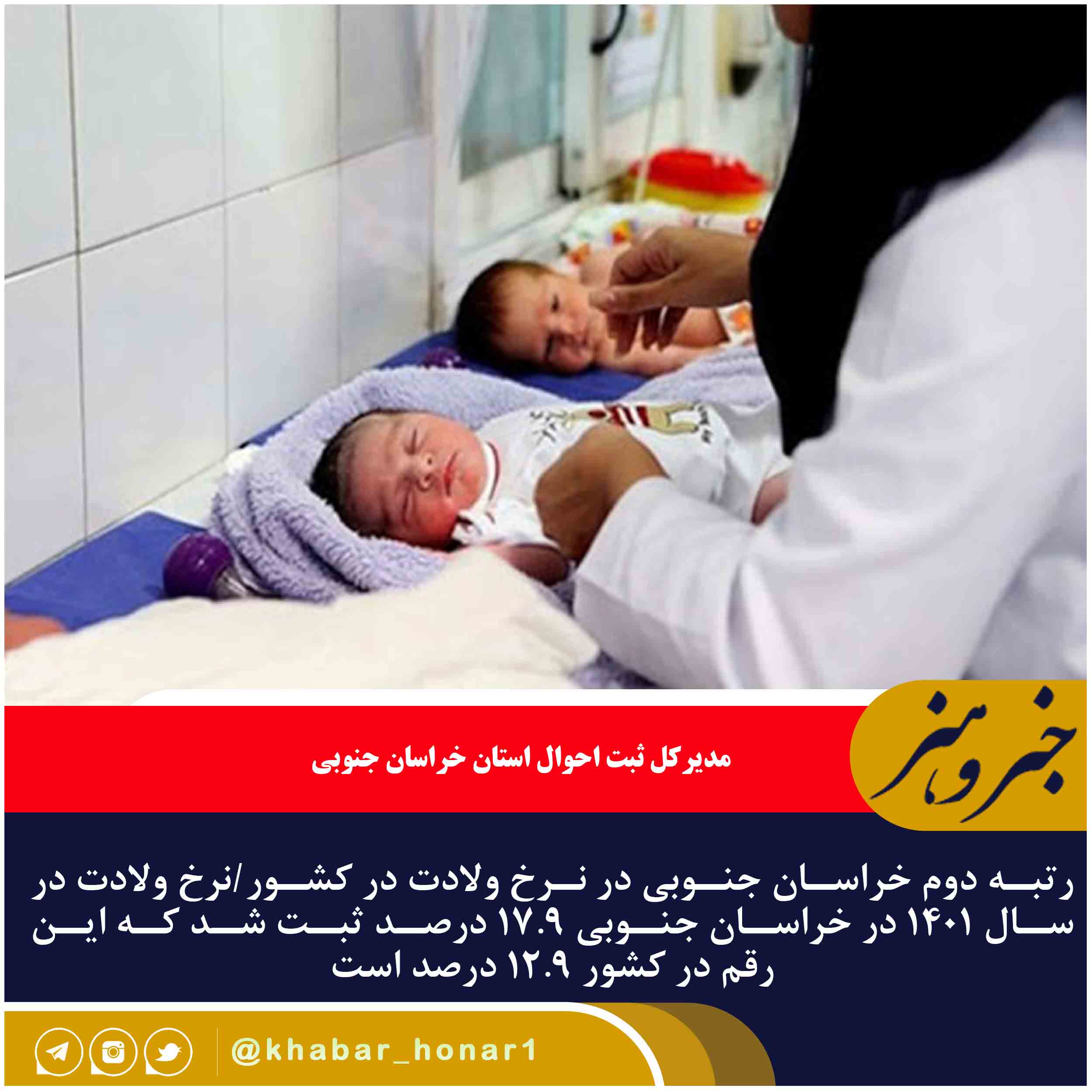 رتبه دوم نرخ ولادت کشور به خراسان جنوبی اختصاص دارد.
