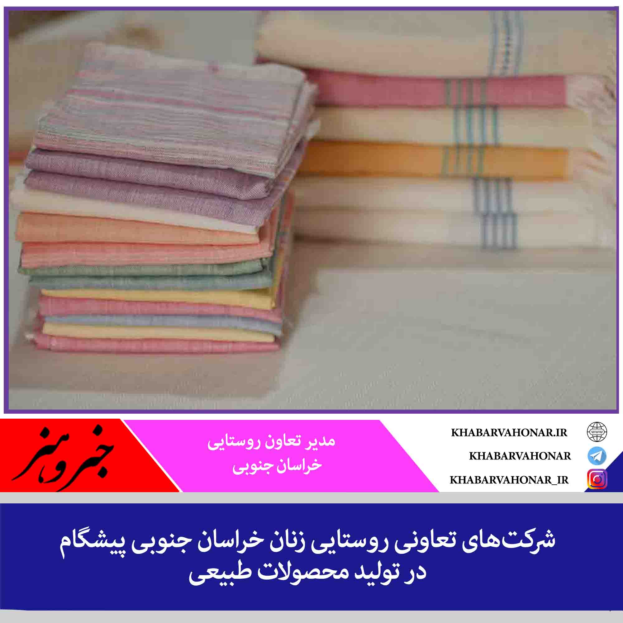مدیر تعاون روستایی استان گفت: ۳ تعاونی شامل تعاونی روستایی زنان خراشاد بیرجند، تعاونی زنان مود سربیشه و تعاونی روستایی زنان برون فردوس در استان به تولید پارچه و حوله از الیاف طبیعی پنبه مشغولند که پارچههای هنر دستشان به محصولاتی همچون لباس نوزاد، پیراهن مردانه، شال، مانتو، تن پوش حمام، جلیقه، کمربند، زانوبند و هدبند تبدیل میشود.