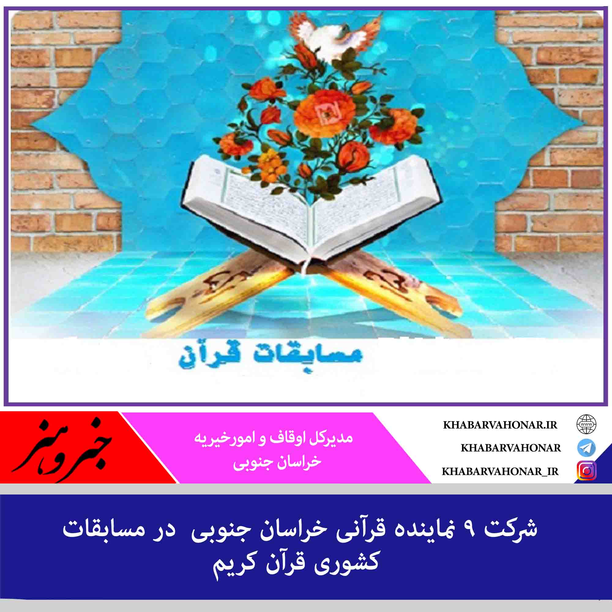 ?۹ نخبه قرآنی خراسان جنوبی در چهل و سومین دوره مسابقات قرآن کریم اوقاف و امور خیریه کشور شرکت می کنند.