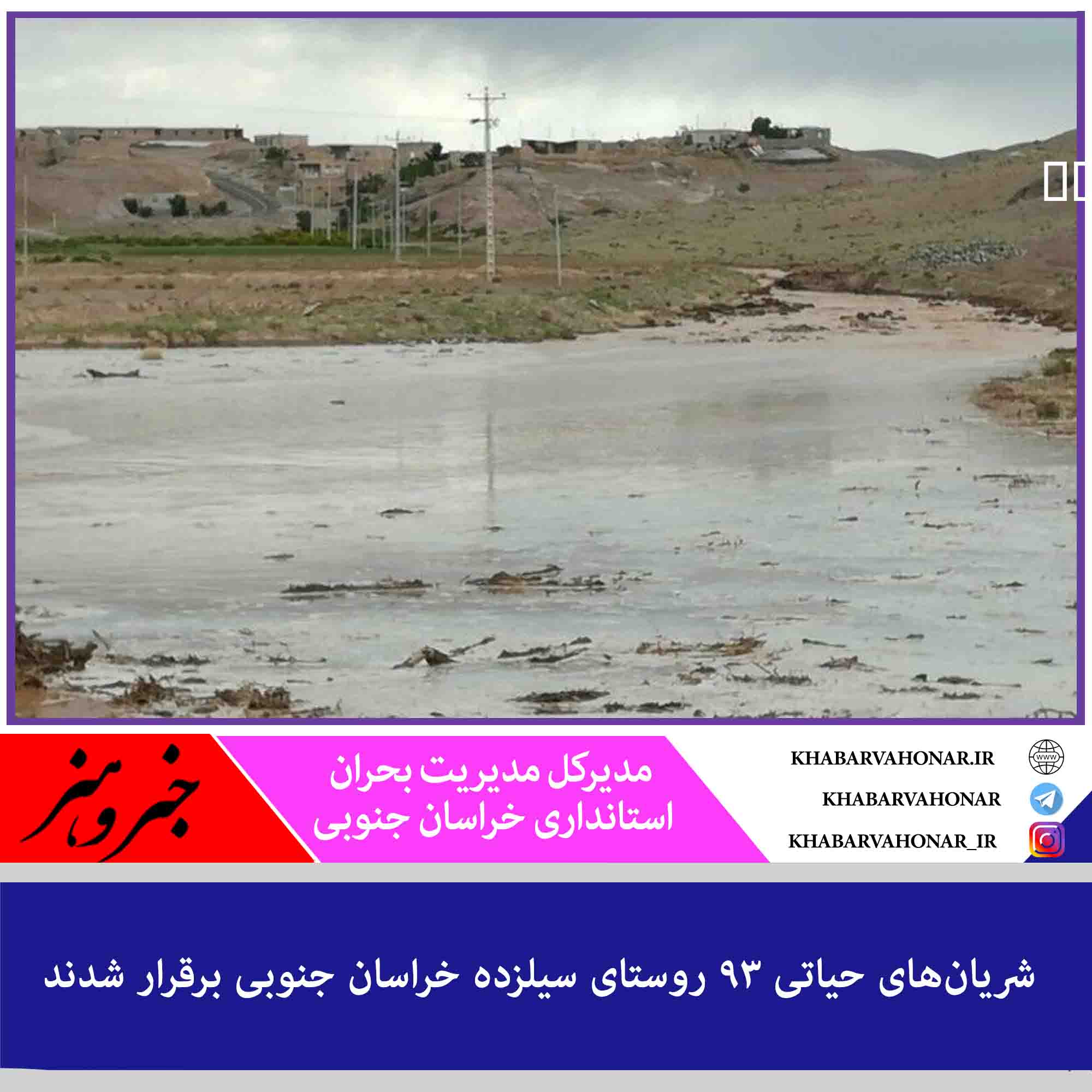 مدیرکل مدیریت بحران استانداری خراسان جنوبی گفت: شریانهای حیاتی آب، برق، گاز و همچنین تلفن ۹۳ روستای استان که از سیلاب متاثر یا به صورت کامل قطع شده بود، به صورت پایدار برقرار شده است.