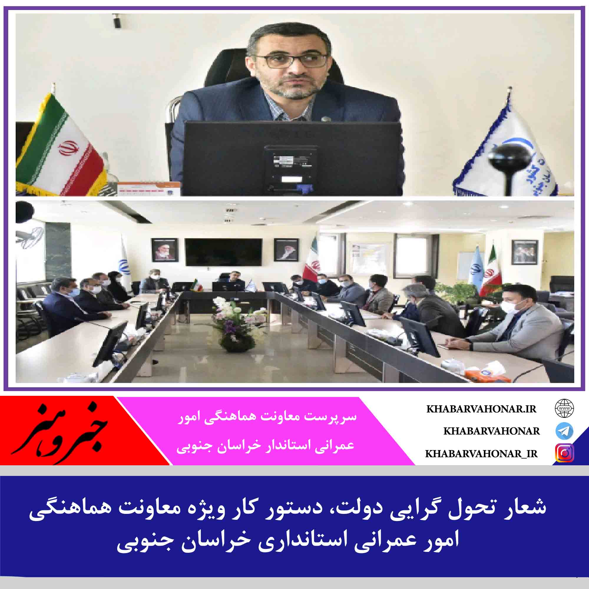 ?سرپرست معاونت هماهنگی امور عمرانی استاندار خراسان جنوبی گفت: شعار تحول گرایی دولت، دستور کار ویژه معاونت هماهنگی امور عمرانی استانداری است.