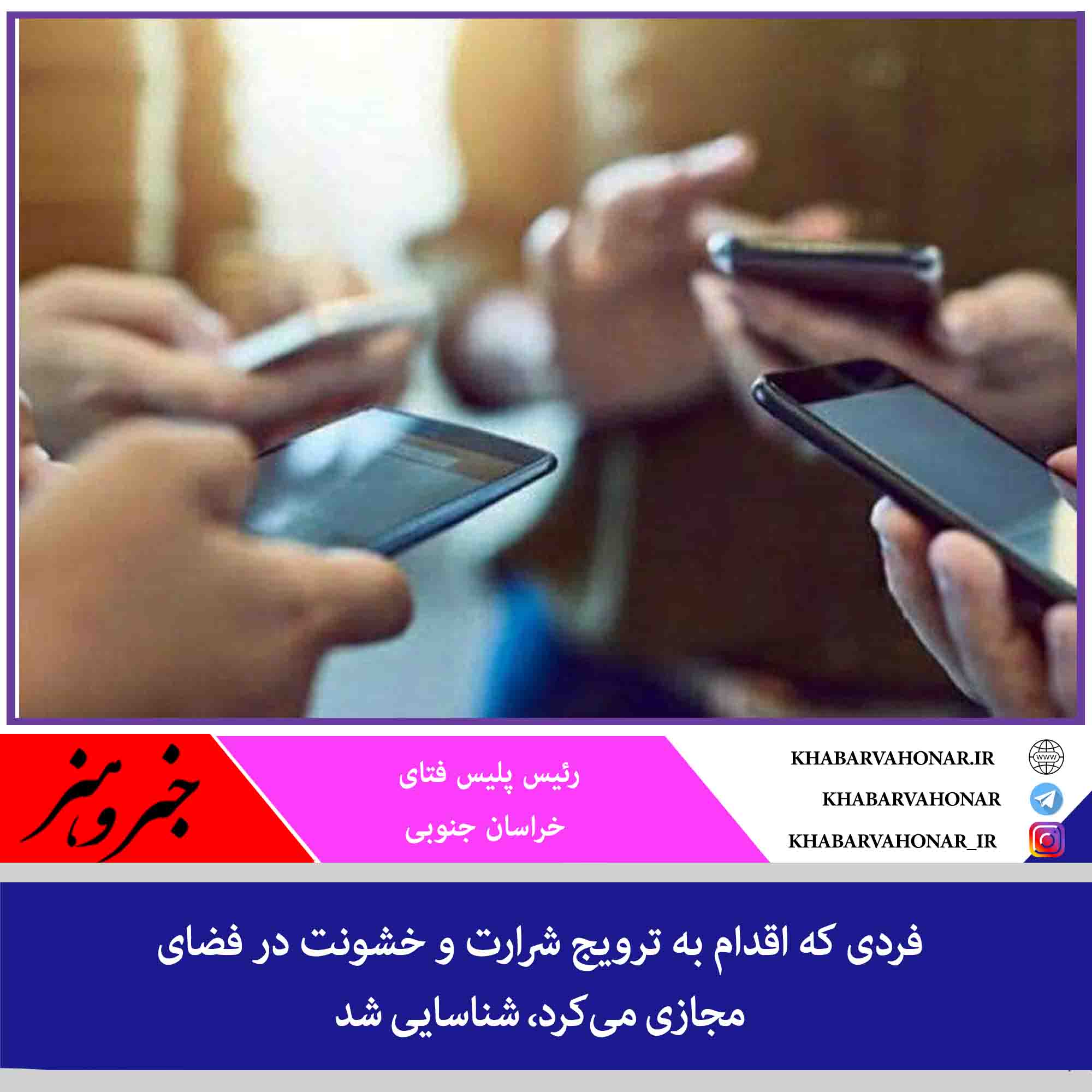 ?رئیس پلیس فتای خراسان جنوبی اظهار کرد: فردی که اقدام به ترویج شرارت و خشونت در فضای مجازی میکرد، شناسایی شد.