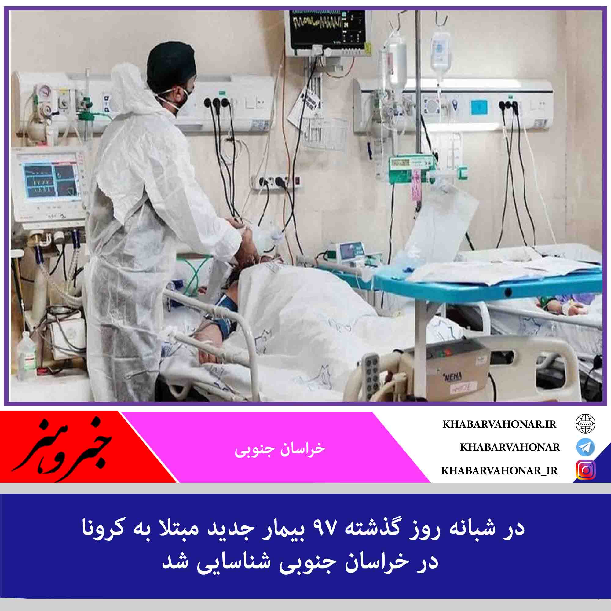 در شبانه روز گذشته ۹۷ بیمار جدید مبتلا به کرونا در خراسان جنوبی شناسایی شد.