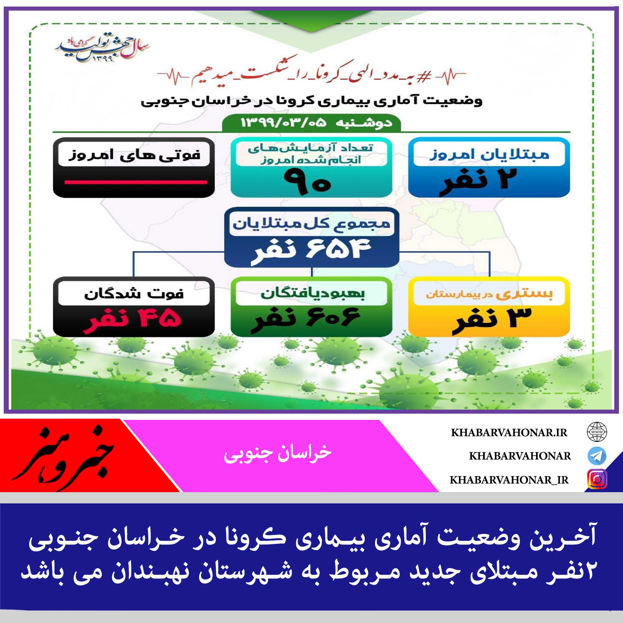 ?دو نفر مبتلای جدید مربوط به شهرستان نهبندان است.