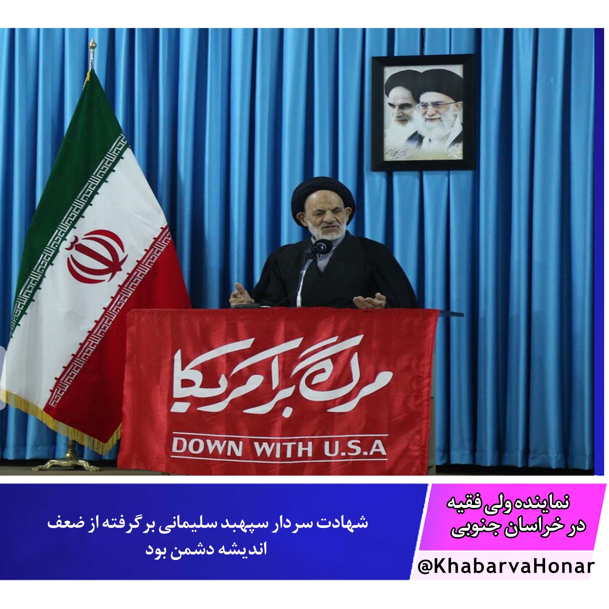 نماینده ولی فقیه در خراسان جنوبی گفت: شهادت سردار سپهبد سلیمانی برگرفته از ضعف اندیشه دشمن بود زیرا با شهادت وی هزاران حاج قاسم پدیدار شدند.