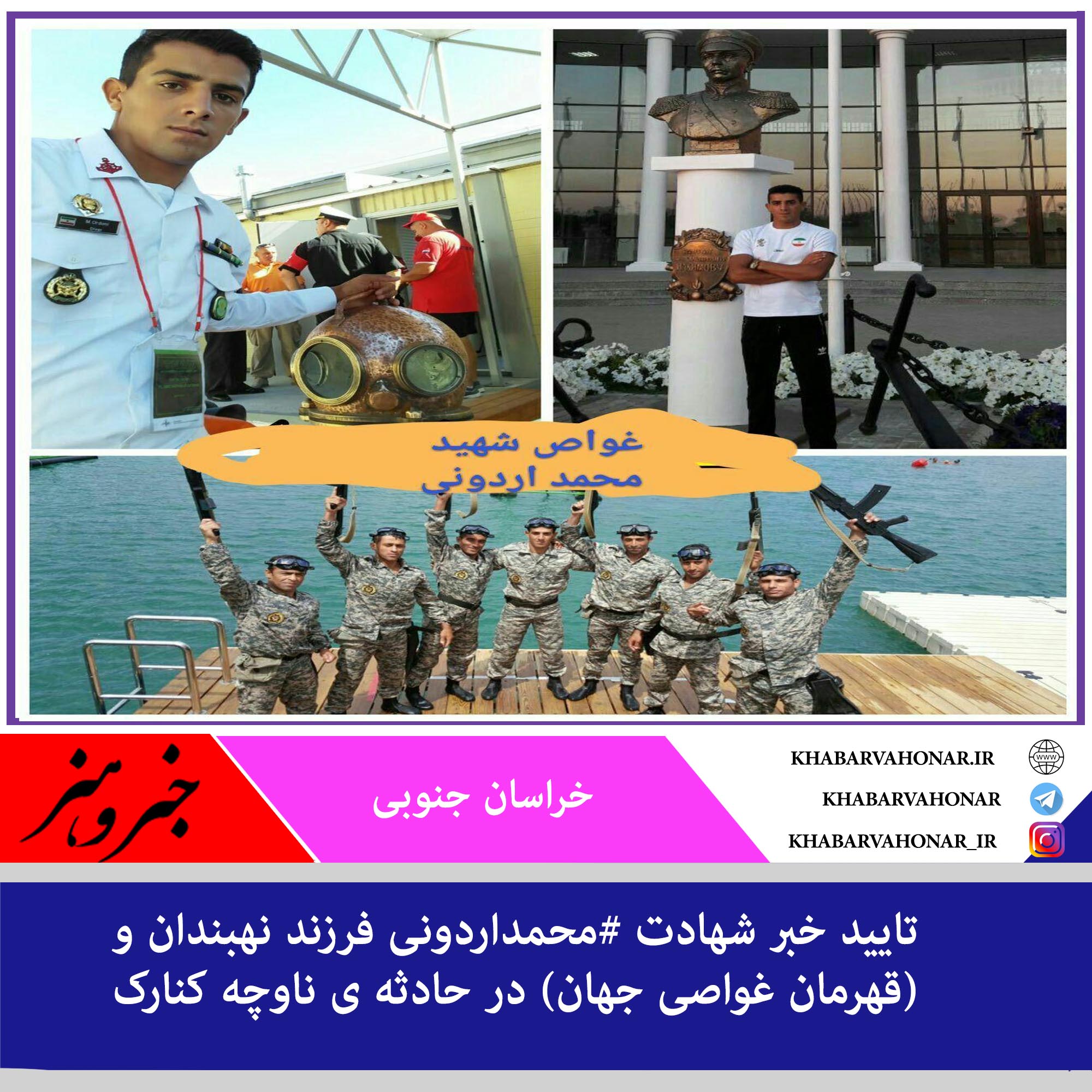 تایید خبر شهادت #محمداردونی فرزند نهبندان و(قهرمان غواصی جهان) در حادثه ی ناوچه کنارک