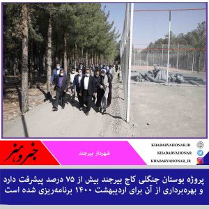 شهردار بیرجند گفت: پروژه بوستان جنگلی کاج بیش از ۷۵ درصد پیشرفت دارد و بهره‌برداری از آن برای اردیبهشت ۱۴۰۰ برنامه‌ریزی شده است.