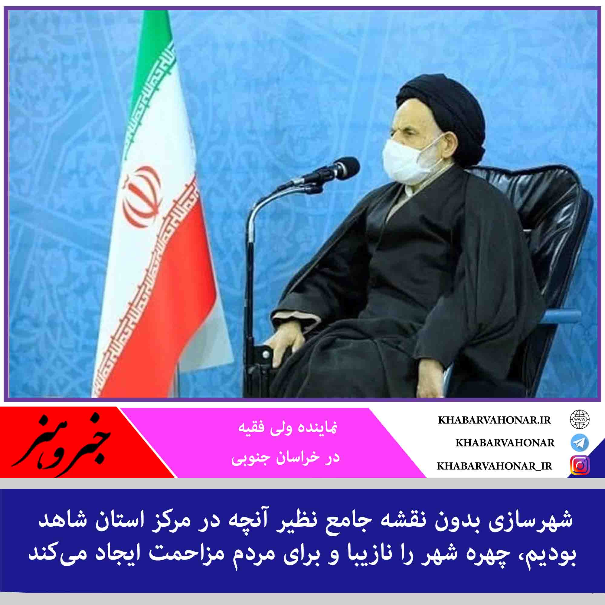 نماینده ولی فقیه در خراسان جنوبی گفت: لازم بود یک نقشه جامع برای کل شهر طراحی میشد و در هر بخشی آنچه لازم بود را تثبیت میکردند که این کار انجام نشد.