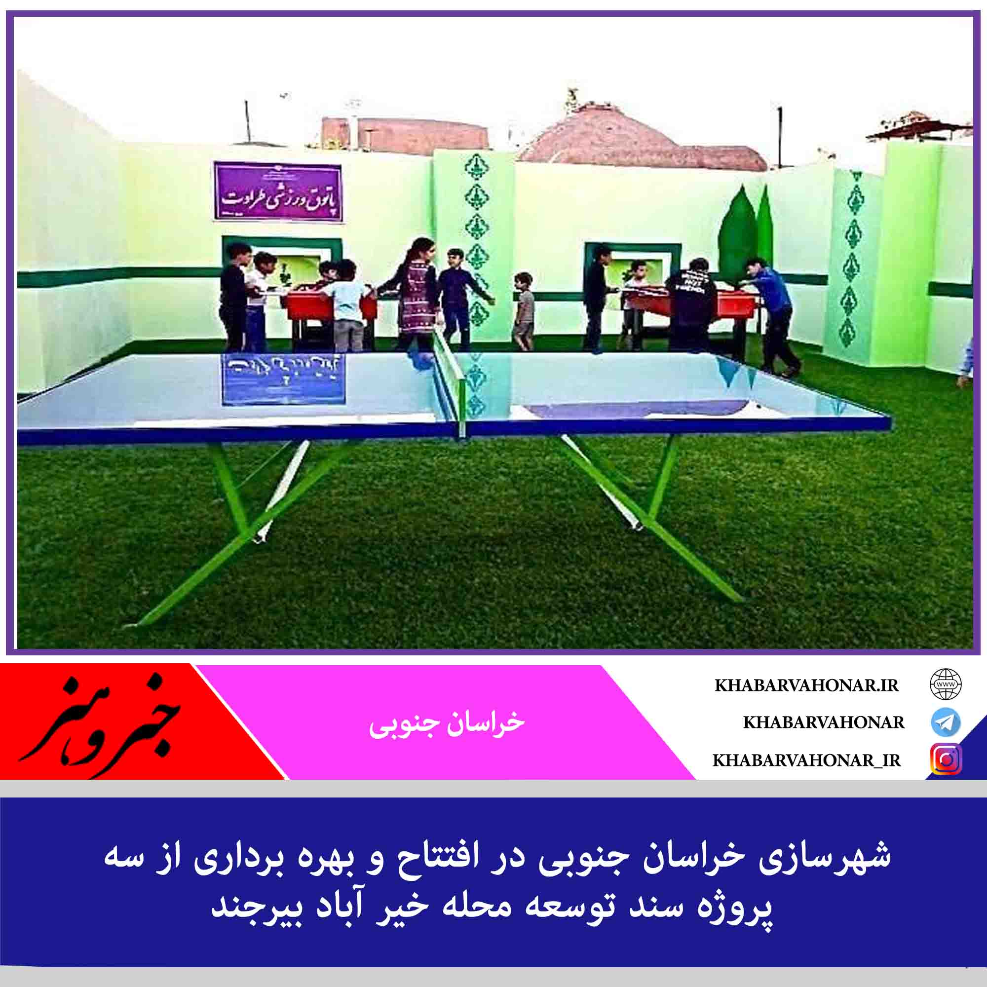 ?این پروژه ها که با مشارکت اداره کل ورزش و جوانان استان و نهاد توسعه محله خیرآباد بیرجند اجرایی شدروز گذشته با حضور معاون محترم هماهنگی امور عمرانی استانداری خراسان جنوبی افتتاح و به بهره برداری رسید.