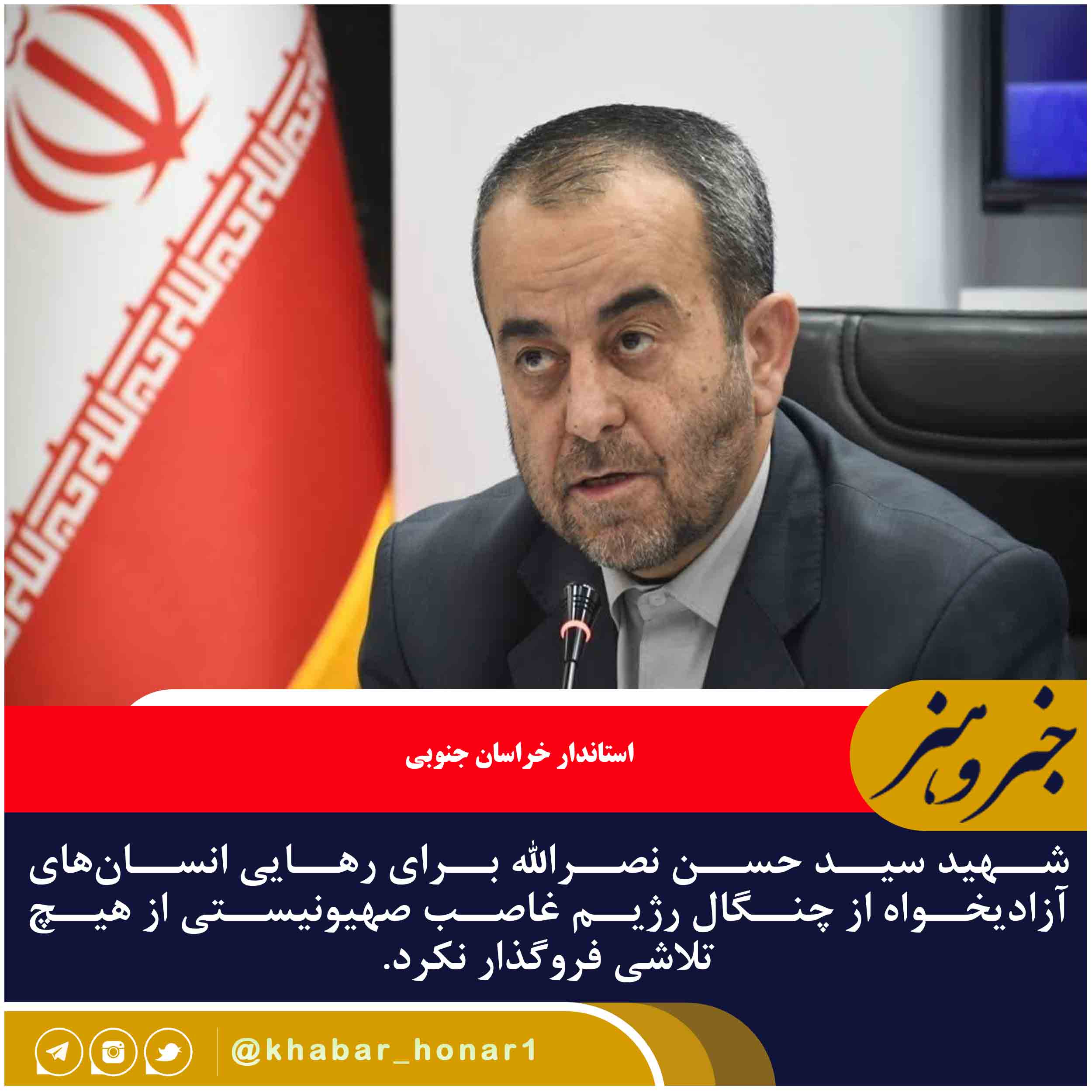استاندار خراسان جنوبی گفت: مجاهد نستوه جبهه مقاومت که در شمار محبوب ترین چهرههای جهان اسلام بود، سالها جانش را به کف گرفته و برای رهایی انسانهای آزادیخواه از چنگال رژیم غاصب صهیونیستی از هیچ تلاشی فروگذار نکرد.