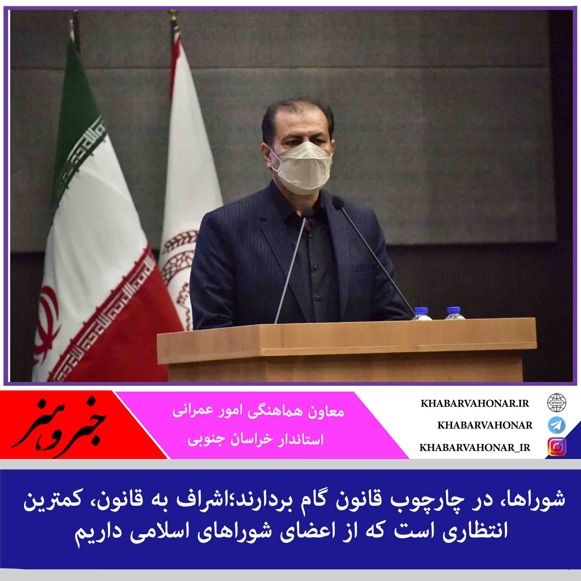 ?معاون هماهنگی امور عمرانی استاندار خراسان جنوبی گفت: اعضای شوراهای اسلامی باید در چارچوب قانون حرکت کنند.