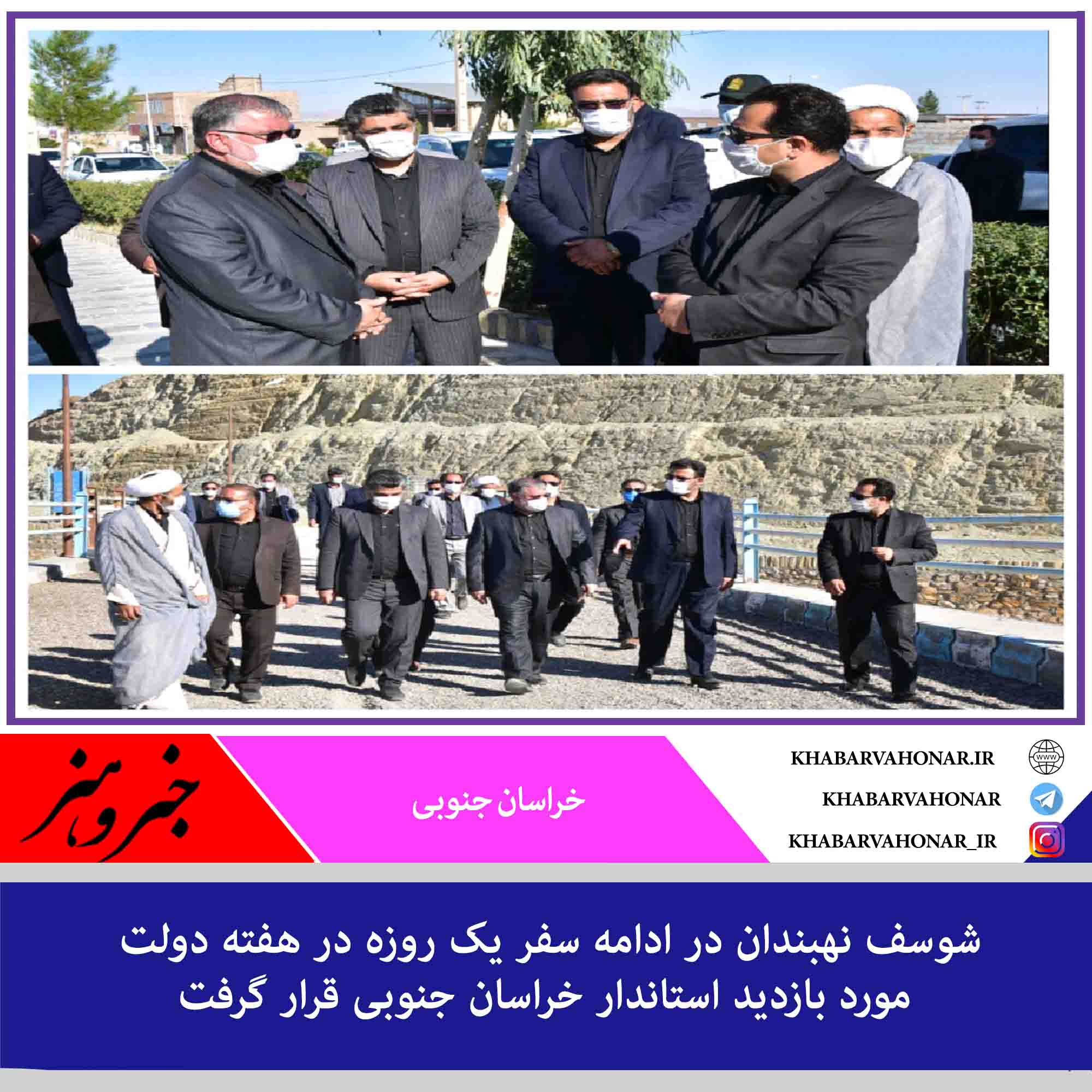?شایان ذکر است:این سفر در پنجمین روز از هفته دولت صورت گرفت و جمعی از مدیران استان، فرماندار شهرستان نهبندان، امام جمعه و بخشدار شوسف، استاندار را در این سفر همراهی کردند.