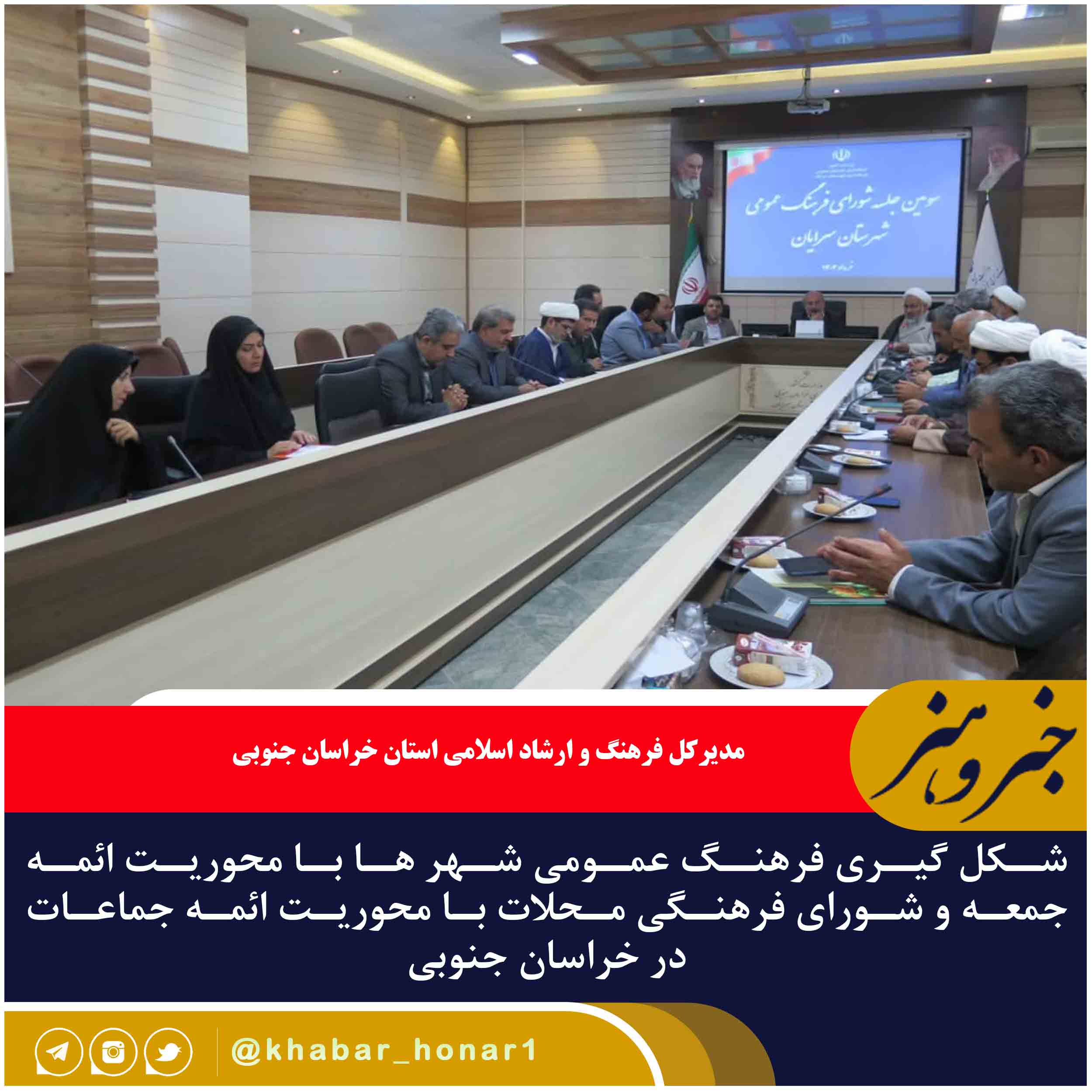 مدیرکل فرهنگ و ارشاد اسلامی استان با تاکید بر فعال سازی شورای فرهنگی محلات در سطح استان و شهرستان ها، گفت: با توجه به وجود خلائی در تکمیل زنجیره چرخه مدیریتی شورای فرهنگ عمومی وجود دارد شکل گیری فرهنگ عمومی شهر ها با محوریت ائمه جمعه و شورای فرهنگی محلات با محوریت ائمه جماعات در دستور کار قرار گرفته است تا دستور العمل های فرهنگی که یکی از مهم ترین آن شعار “بازگشت به مسجد” است، از این طریق عملیاتی گردد.، علی فرخنده در سومین جلسه شورای فرهنگ عمومی شهرستان سرایان، بیان کرد: شورای فرهنگی محلات، ضمانت اجرایی سیاست گذاری های شورای فرهنگ عمومی هستند و در حوزه اجرا نقش تاثیر گذاری دارند که می بایست فعال و تقویت شوند.
