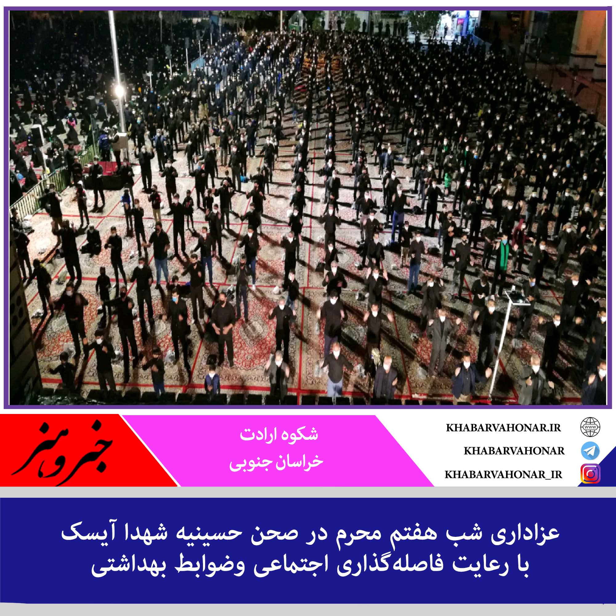 عزاداری شب هفتم محرم در صحن حسینیه شهدا آیسک با رعایت فاصلهگذاری اجتماعی وضوابط بهداشتی
