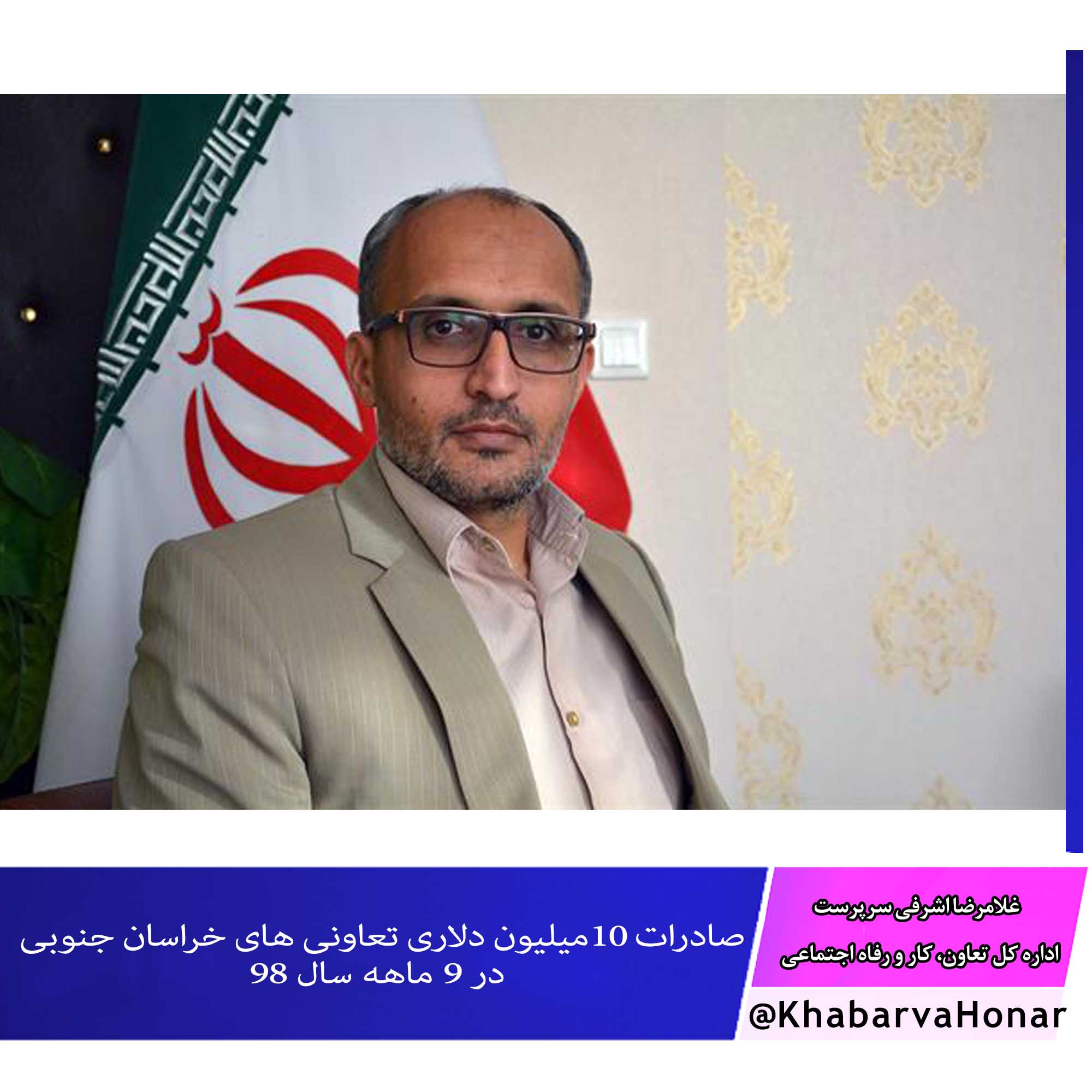 غلامرضا اشرفی سرپرست اداره کل تعاون، کار و رفاه اجتماعی استان از صادرات ۱۰۸۸۳هزار دلاری تعاونی های استان در ۹ ماهه سالجاری خبر داد.