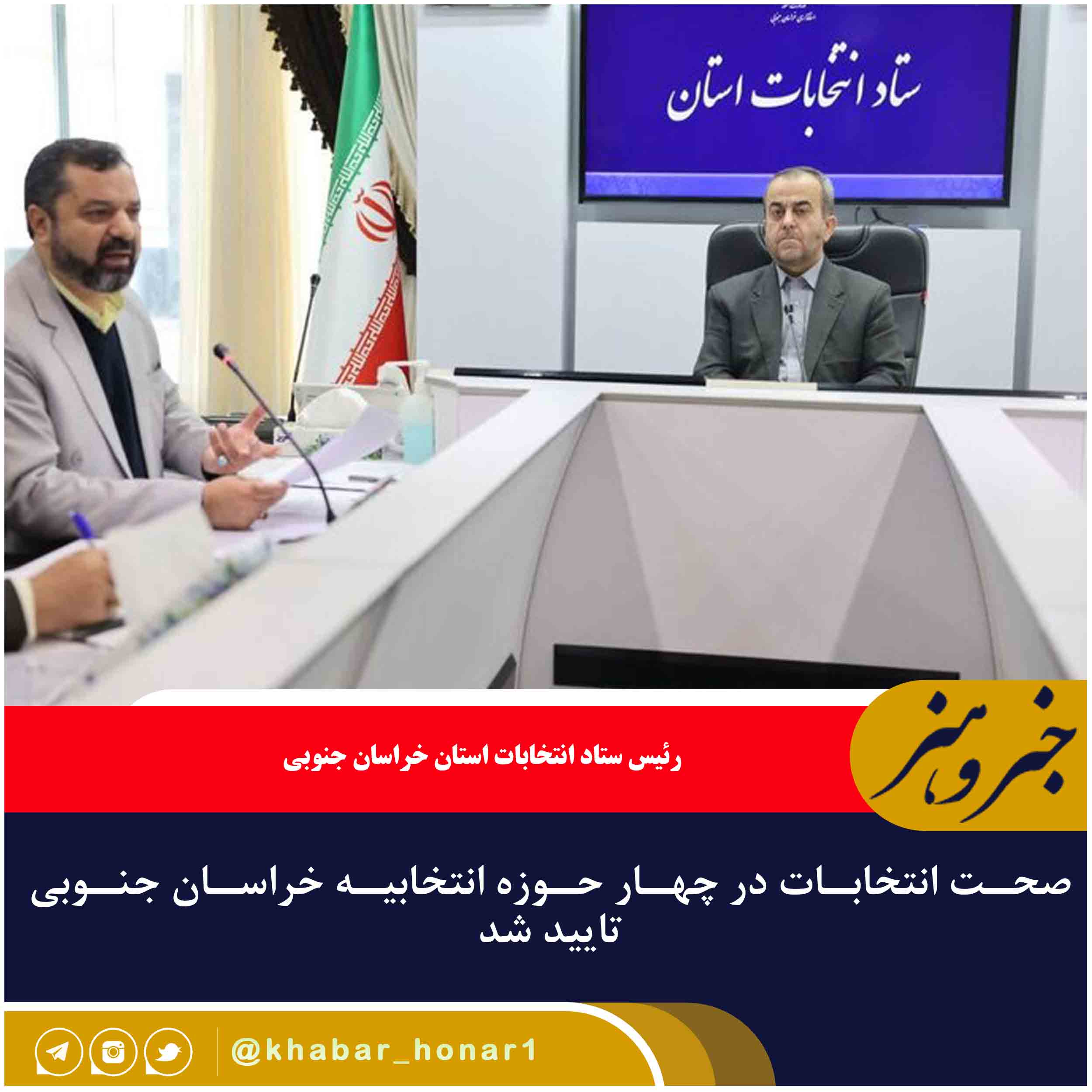 رئیس ستاد انتخابات استان خراسان جنوبی گفت: براساس فهرست اعلامی شورای نگهبان، صحت انتخابات در چهار حوزه انتخابیه این استان تایید شده است.