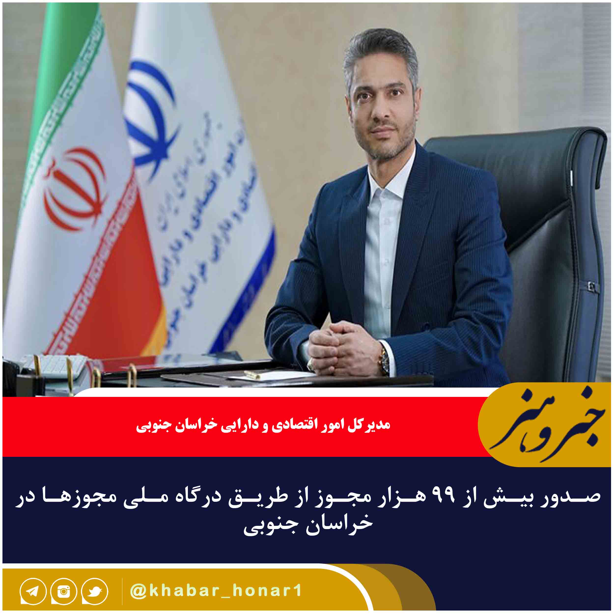 مدیرکل امور اقتصادی و دارایی خراسان جنوبی گفت: از زمان راهاندازی درگاه ملی تاکنون ۹۹ هزار و ۳۱۱ مجوز در استان صادر شده است.