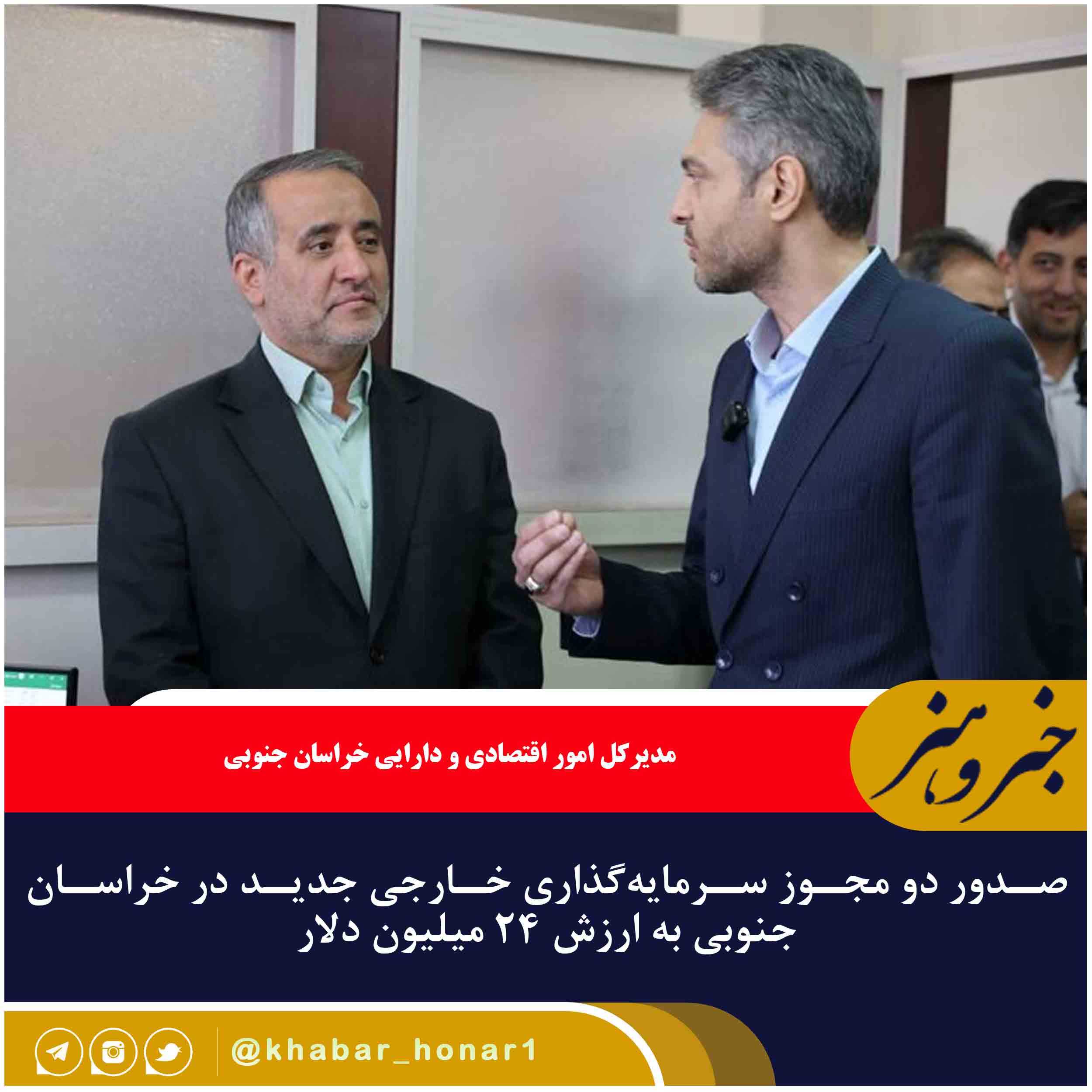 مدیرکل امور اقتصادی و دارایی خراسان جنوبی گفت: دو مجوز جدید سرمایهگذاری خارجی به ارزش ۲۴ میلیون دلار برای استان صادر شده است.