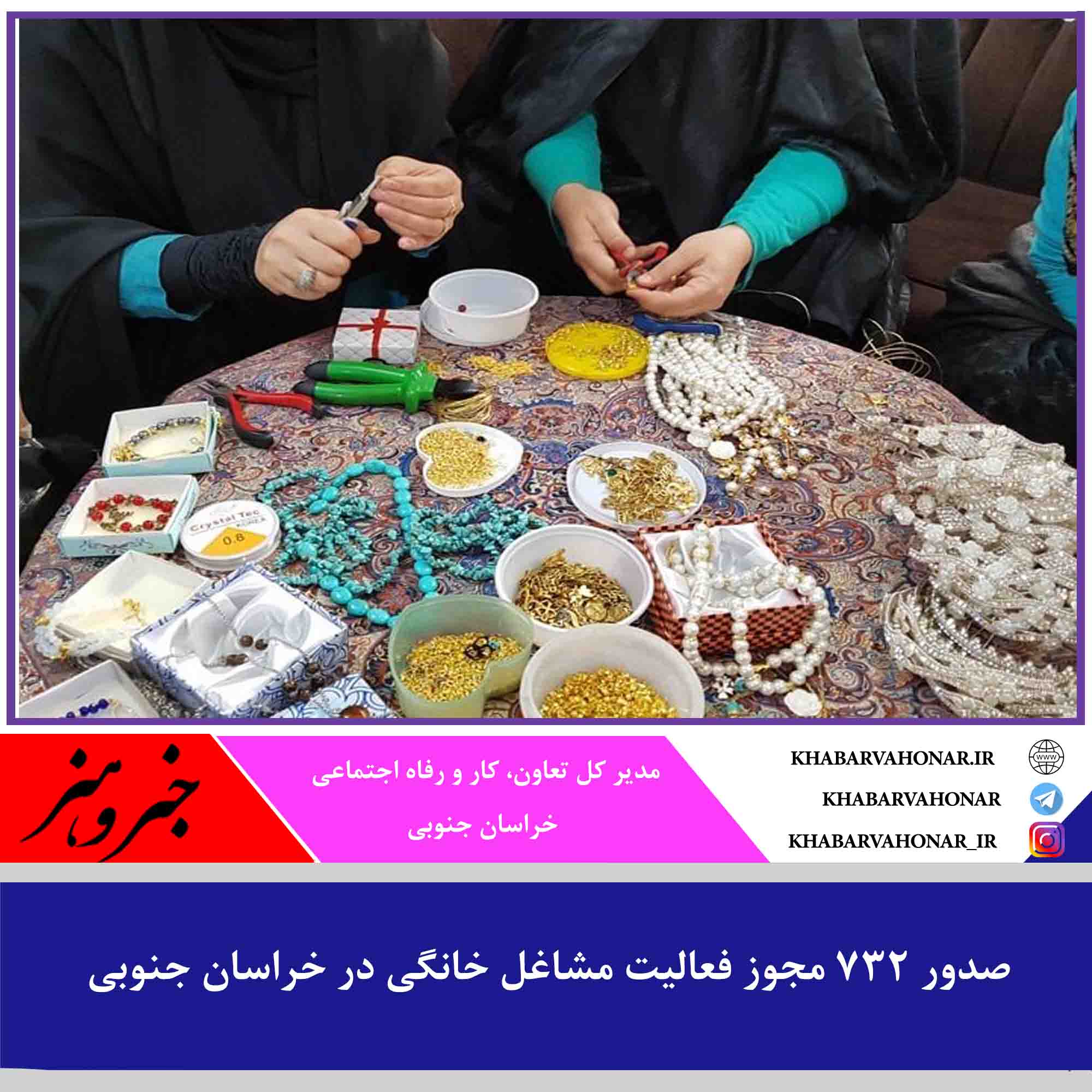 ۷۳۲ مجوز فعالیت مشاغل خانگی از ابتدای سالجاری تاکنون در خراسان جنوبی صادر شد