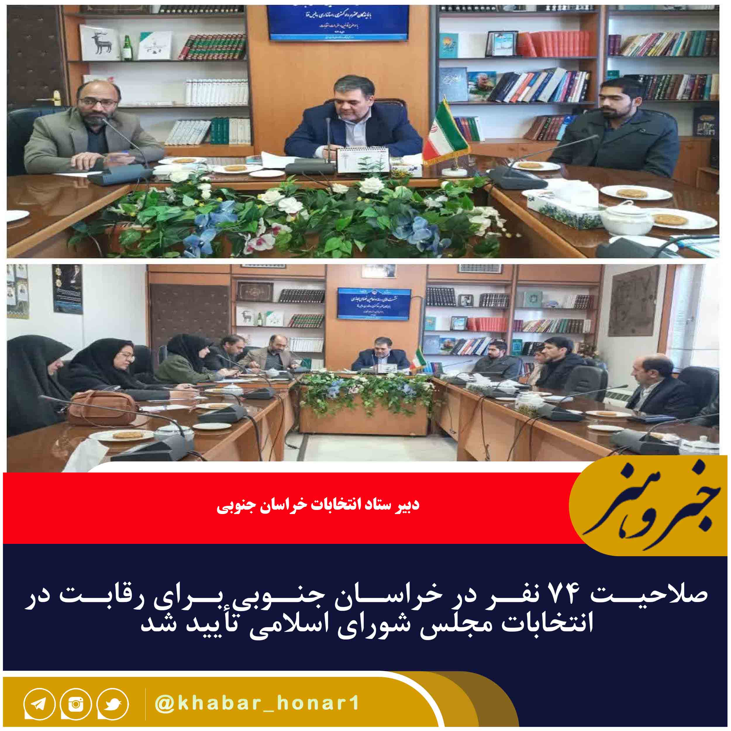 ?دبیر ستاد انتخابات خراسان جنوبی گفت:صلاحیت ۷۴ نفر در خراسان جنوبی برای رقابت در انتخابات مجلس شورای اسلامی تأیید شد.