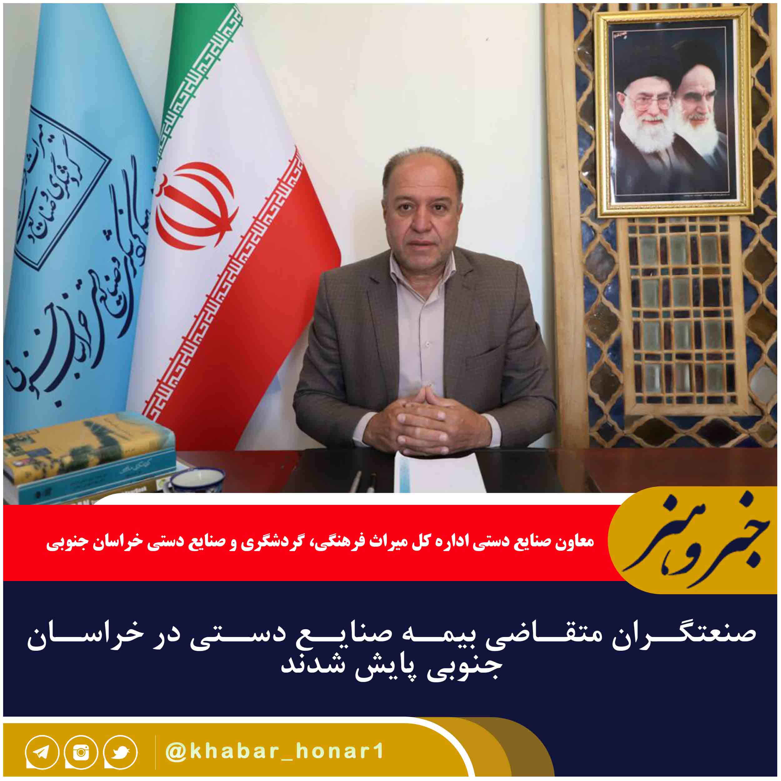 معاون صنایع دستی اداره کل میراث فرهنگی، گردشگری و صنایع دستی خراسان جنوبی گفت: صنعتگران متقاضی بیمه در این استان پایش شده و تاکنون بیش از ۶۰۰ نفر برای ثبتنام اقدام کردهاند.