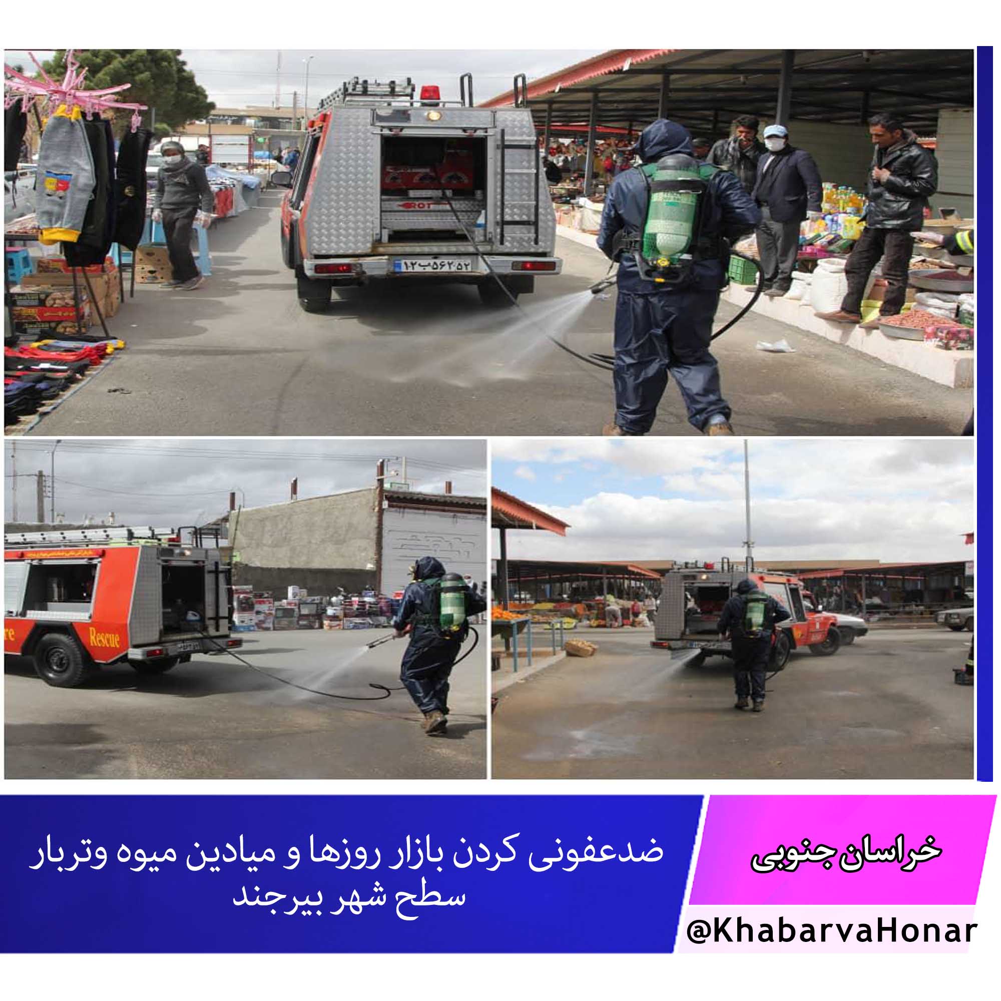 ضدعفونی کردن بازار روزها و میادین میوه وتربار سطح شهر بیرجند