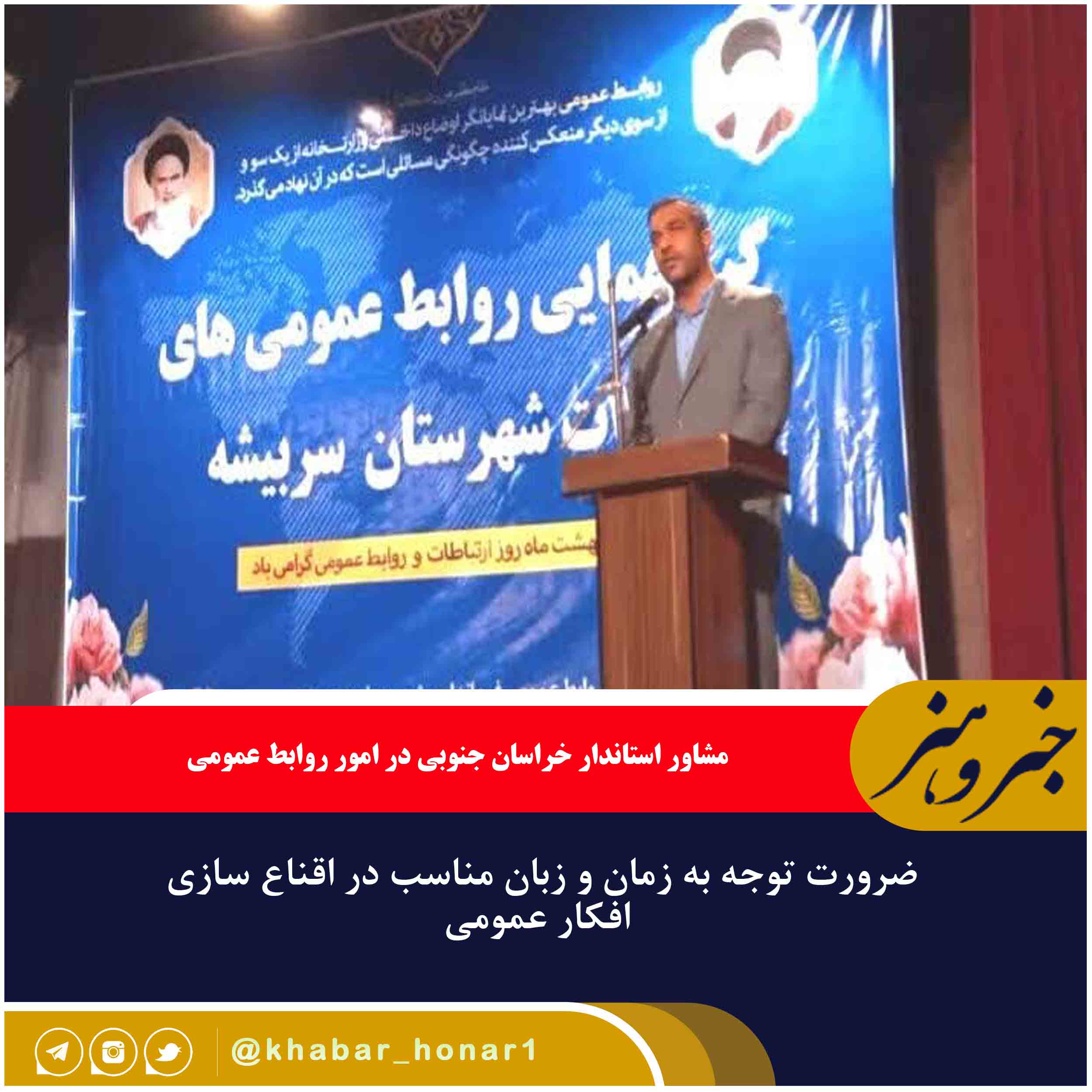 ?مشاور استاندار خراسان جنوبی در امور روابط عمومی بر ضرورت توجه به زمان و زبان مناسب در اقناع سازی افکار عمومی تأکید کرد.